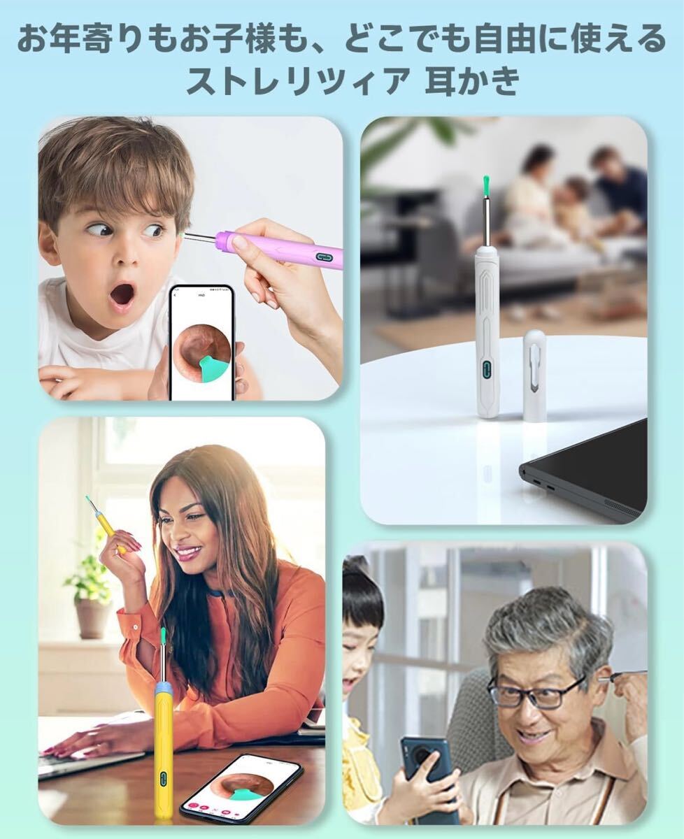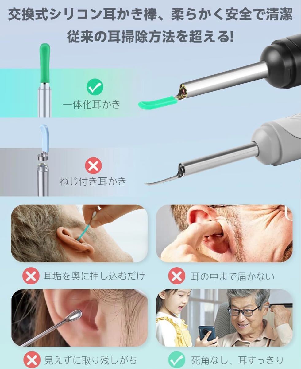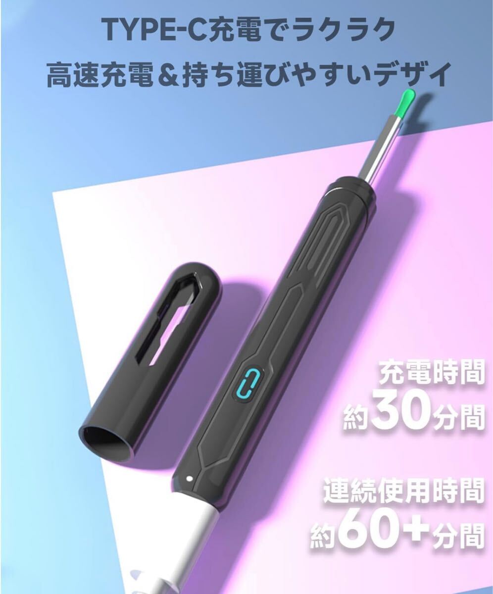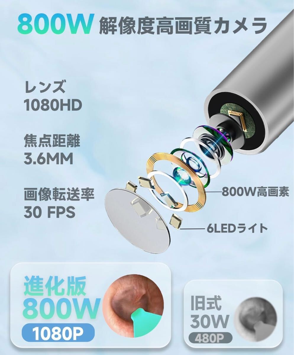 耳かきカメラ 1500万画素 LEDライト 極細レンズ 耳掃除 防水 高画質 左右反転機能 録画/写真対応 type-C充電 子供 お年寄り WiFi接続
