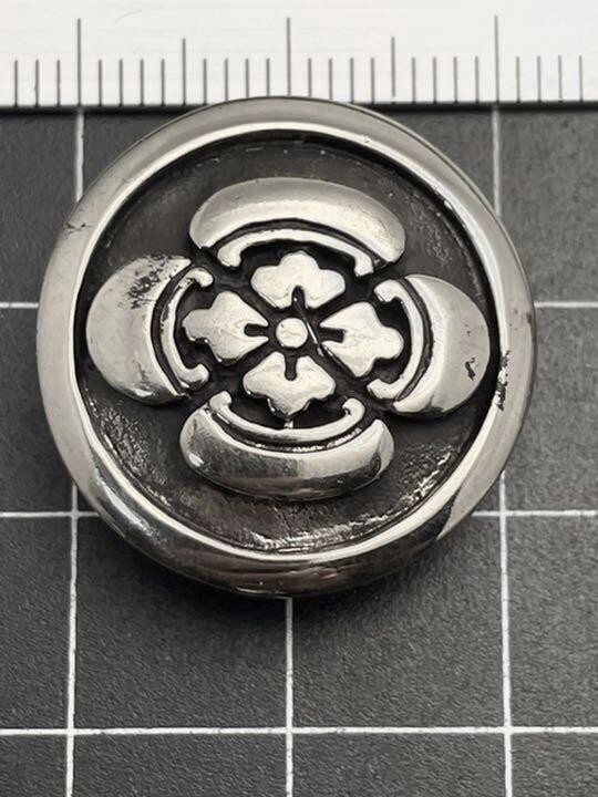 ジャーマンシルバー製家紋コンチョ シルバー925に見えるように配合など工夫して製作しました 燻しも綺麗に出てます シルバー925に見えますが全く違う金属です 小サイズ(22mm) 革ジャン 革ベスト バッグ ウォレット ベルト バイクのサイドバッグやツールバッグ メディスンバッグなどなど 穴を空けてマイナスネジで留めるだけの簡単カスタム コンチョと言ってもわからない方も多いかと思います 頑丈になったバッジと思って頂けたら間違いないかと思います ワッシャーなどを使ってバイクフェンダーの穴隠しにつかうる方もいます。 アイデアで色んな使い方を楽しんで下さい 別に色んな家紋の大 中 小 ペンダント コンチョ も出品中 数年ぶりに家紋系をまとめて製作しました 1種類に付きそんなに数は製作してませんので早い者勝ち スマホに蛍光灯を照らし超接写してるので荒が出てしまいました。   現在売り切れ中の物でも在庫があるかも知れません コメントください また定期的に家紋コンチョ(ペンダント)を制作することになりました プロフでお知らせします 次回の制作時に合わせて連絡頂けたら希望の家紋制作します(前払い) 出品物に無く新たに制作する物に関しましては現在出品している金額よりも高額になります(原型より制作になりますので)