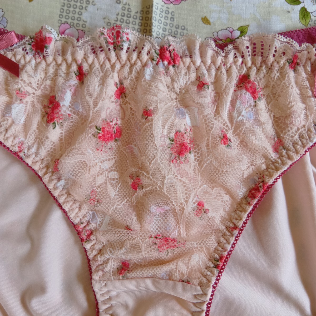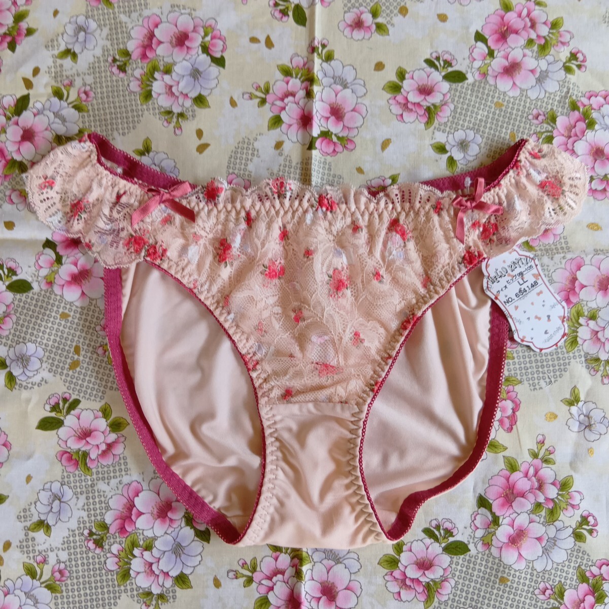 Product name: サンリオ ベージュ地フロント赤お花模様のショーツ LL