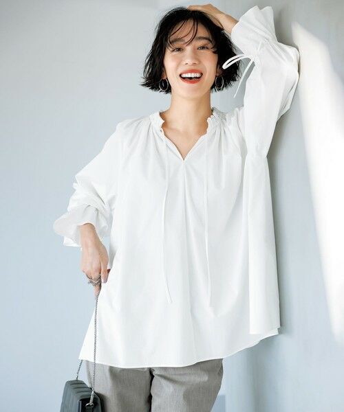 Product name: UNFILO ★新品【洗える/UVケア/イージーケア】2WAYギャザーブラウス ホワイト系 オンワード樫山★sizeM
