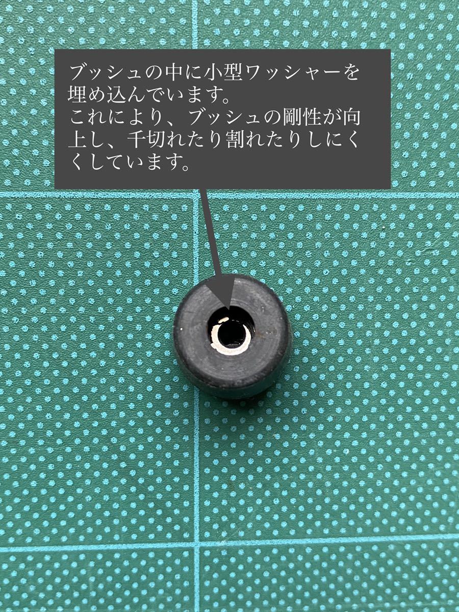 ブッシュの中にワッシャーを組み込んでますので、ブッシュが千切れたり、割れたりしにくくなっています。