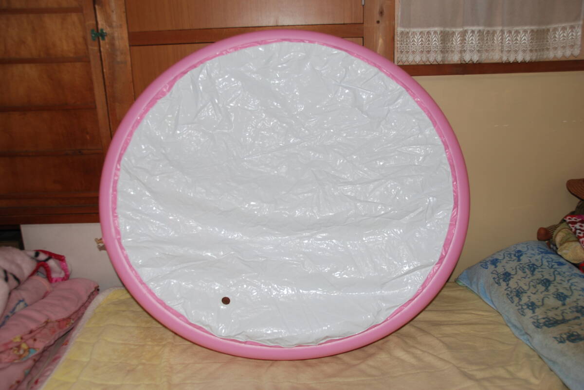 サイズは直径100cmの円形、高さは35cm、キルティングの二重底になっています。