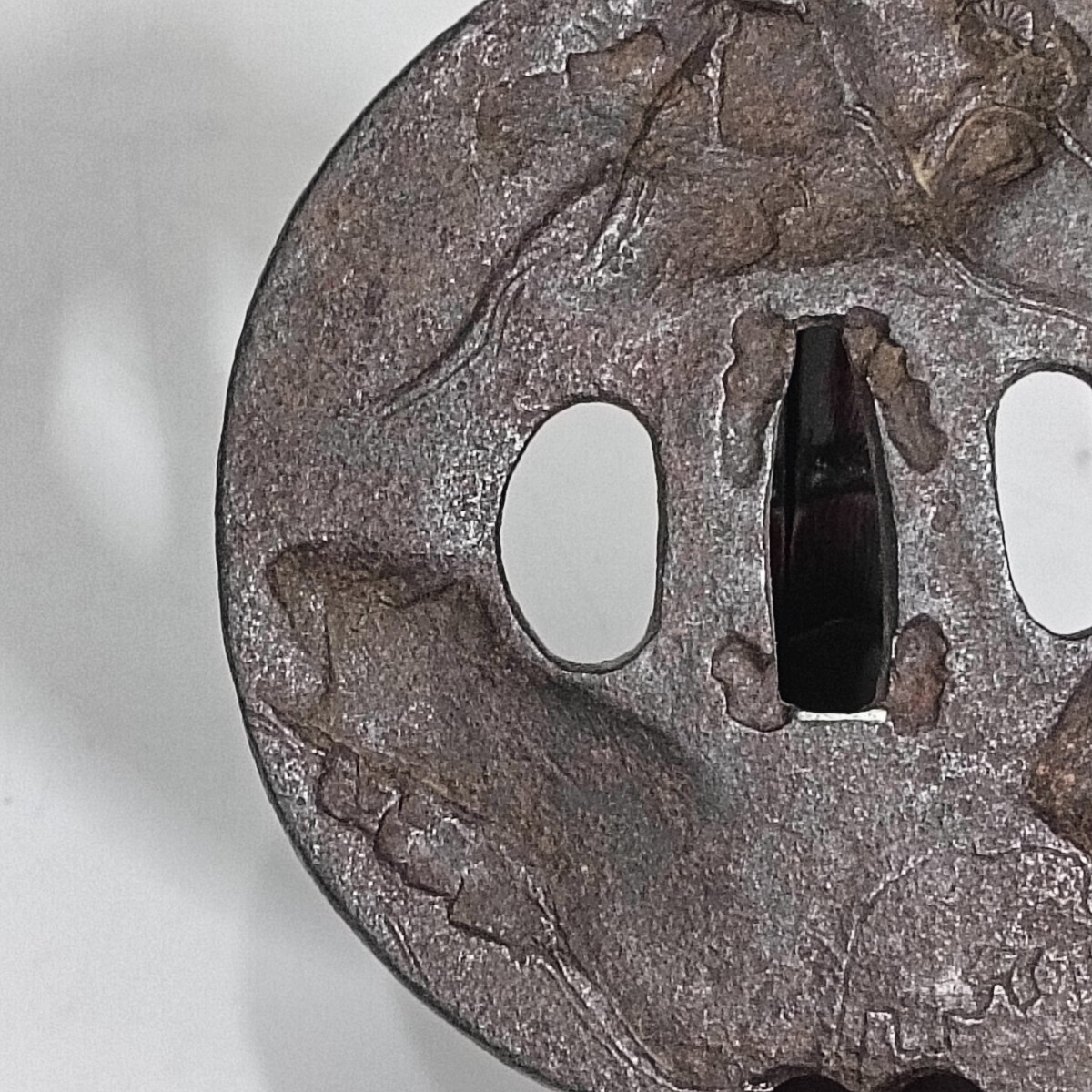 【A3686】鉄地 風景図彫刻 刀鍔 金工細密彫刻 刀装具 日本刀装具 刀剣美術 骨董品 アンティーク