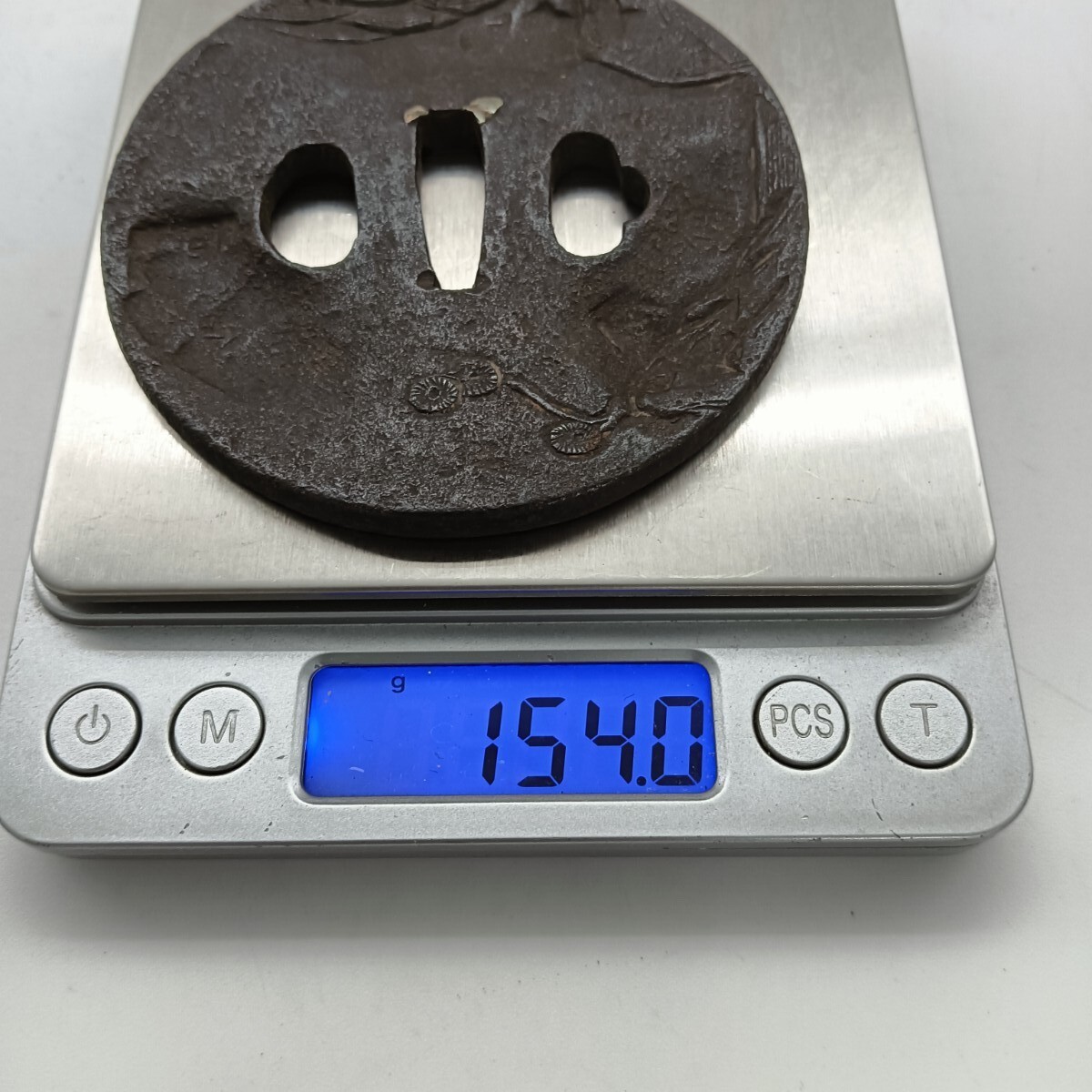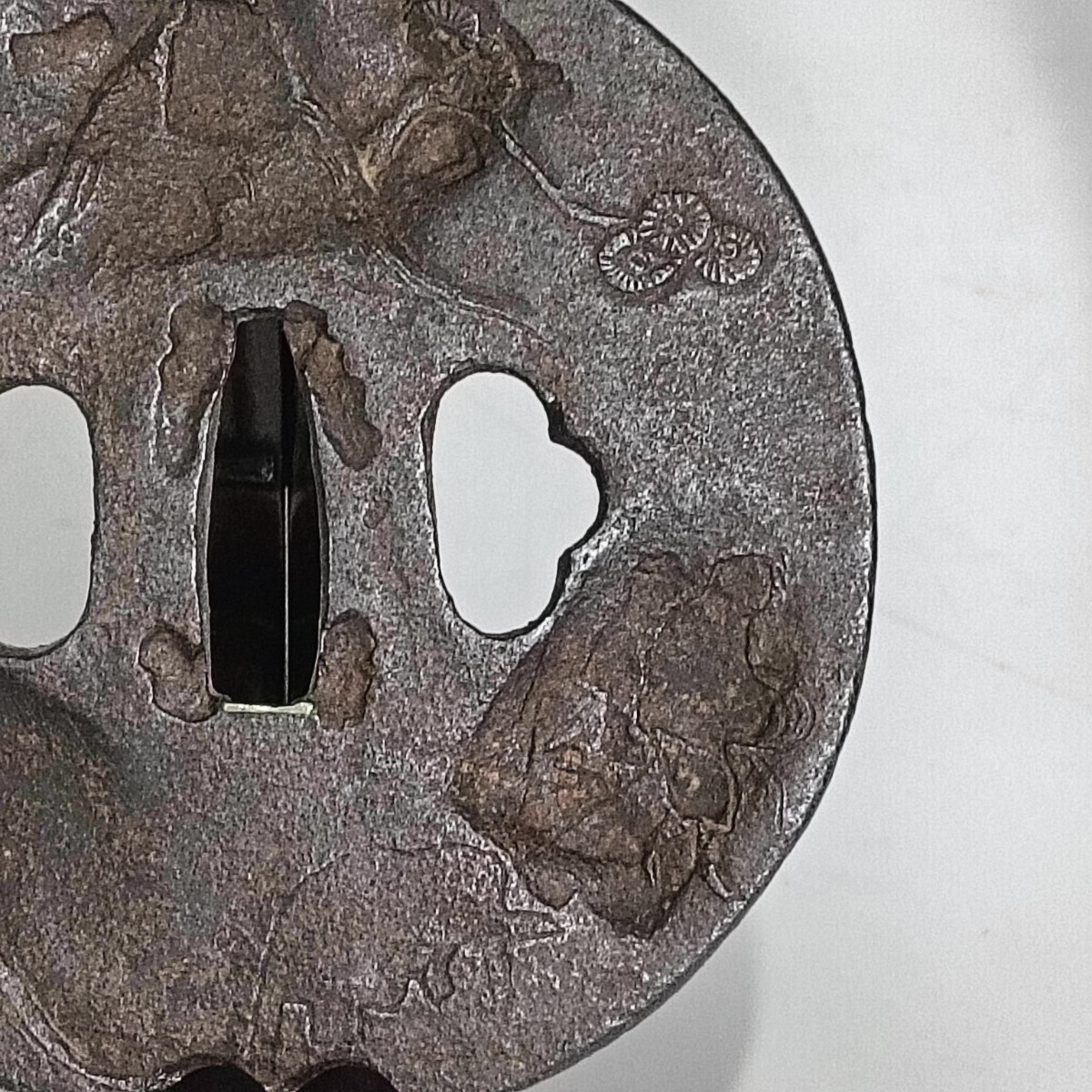 Product name: 【A3686】鉄地 風景図彫刻 刀鍔 金工細密彫刻 刀装具 日本刀装具 刀剣美術 骨董品 アンティーク