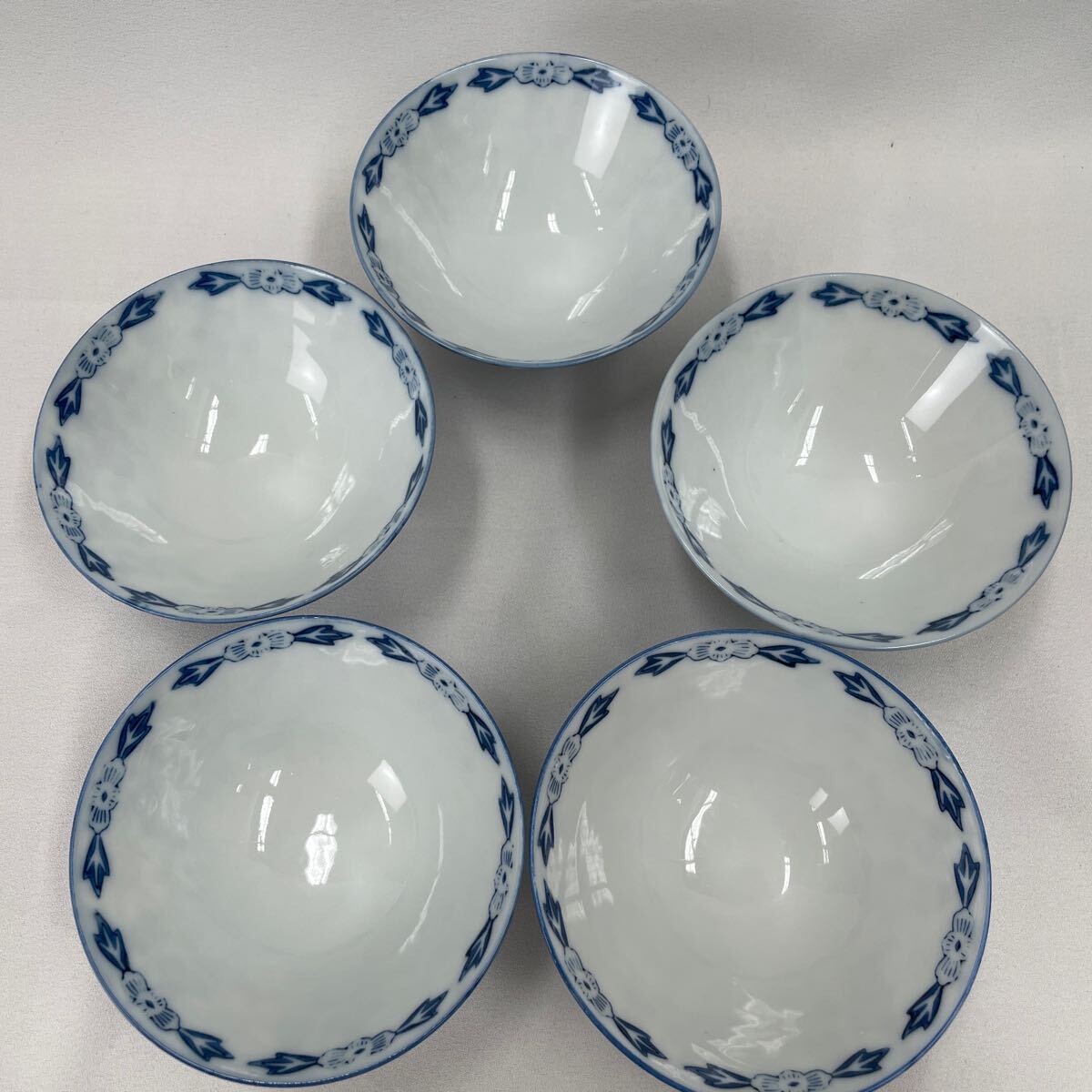 【1円〜】お茶碗 5個 ご飯茶碗 飯碗 葉模様 花柄 ブルー ホワイト 食器 和食器 陶器【TU01262】