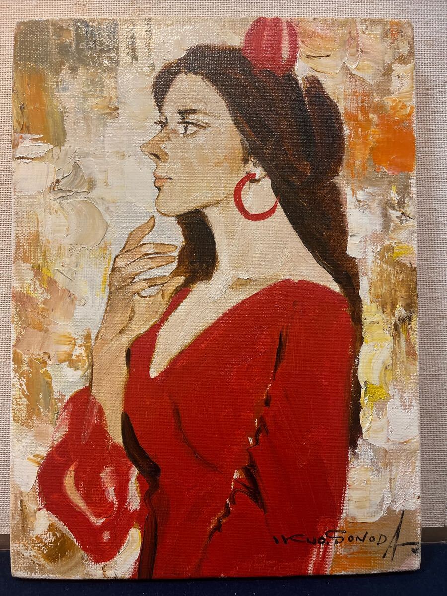 Product name: 真作保証 園田郁夫 油彩画 4号 踊り子 サシ箱黄袋付き