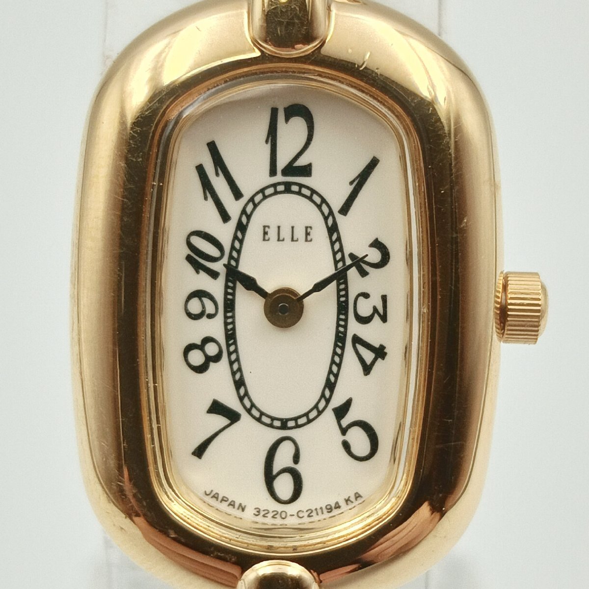1円 W247 ELLE レディース ホワイト×ゴールド 腕時計 アナログ文字盤 不動 アンティーク ※要画像確認