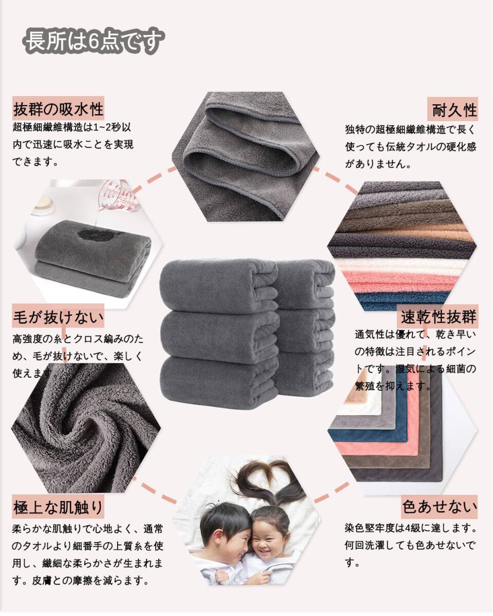 【バスタオル 6枚セット】サイズ:約70×140cm、重量:約300g(1枚あたり)セット内容: グレー6枚。出張、旅行、入浴、ご家族皆さんが満足できます、様々な場合で活躍。