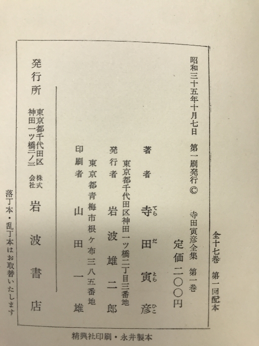 Product name: 寺田寅彦全集(1~17巻/全17冊セット)岩波書店 著:寺田寅彦 昭和35年~