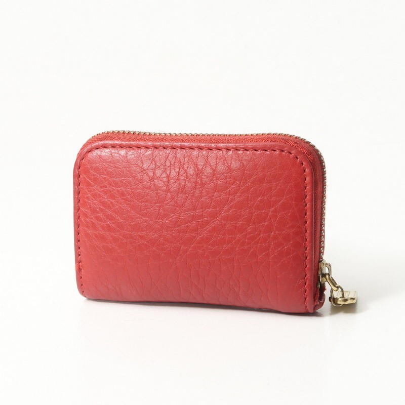 赤のシュリンクレザーにロゴが入ったゴールドの引手がアクセントのシンプルなデザイン。