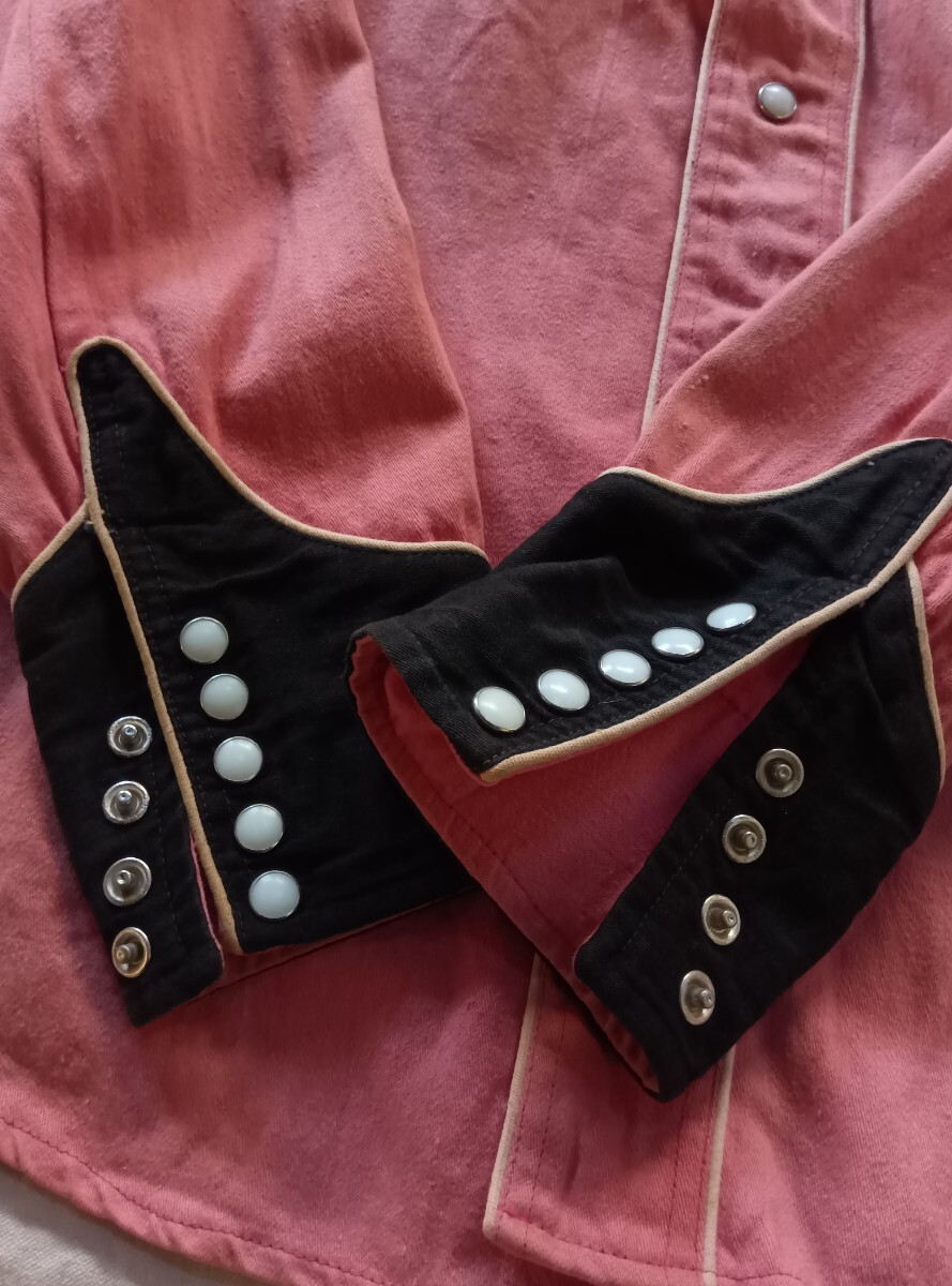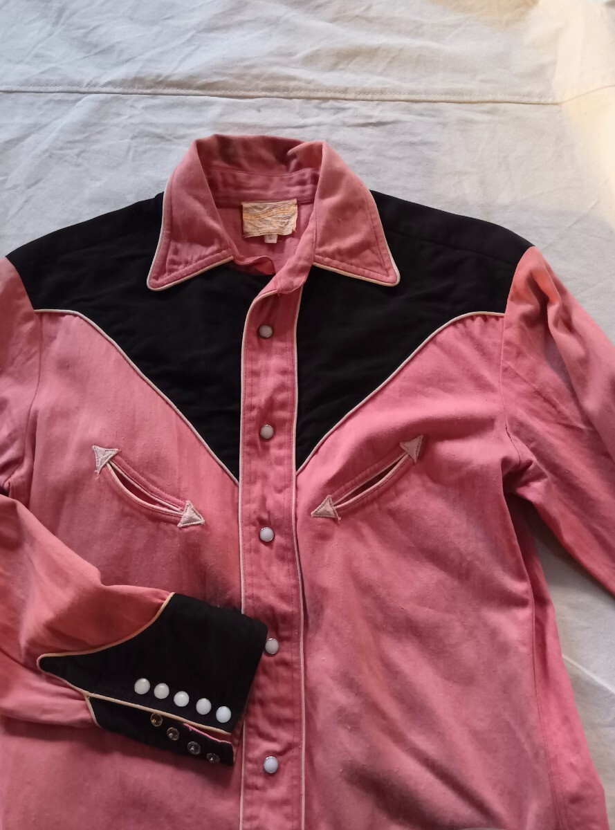 ■60s〜70sUSA製ビンテージWesternTeils黒xピンクのツートンカラーウエスタンシャツです。