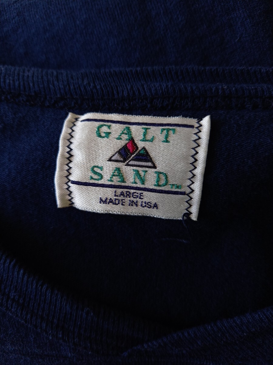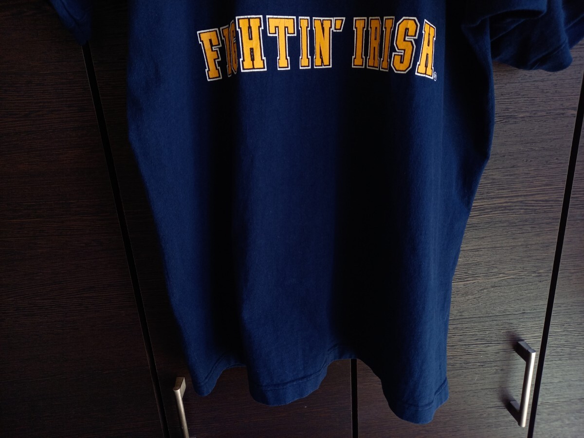ビンテージ古着屋で購入した90s GALT SAND USA製 ノートルダム カレッジ 肉厚コットン フットボール ネイビー Tシャツ sizeLです。身幅約61着丈約79センチです。状態はビンテージにしては使用感も少なく全体的に良い状態だと思います。必ず当方の自己紹介欄を見てから質問、入札、落札してください。