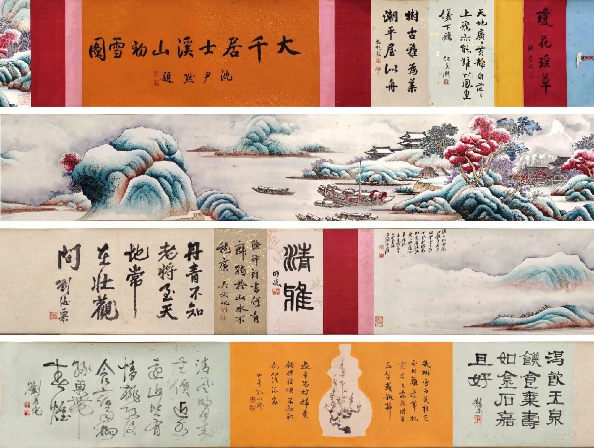 【安】中国近時代画家「張大千書」紙本「渓山初雪図長巻」 巻き物 中国画 墨寶妙品 中国書道 古美味 古美術 289