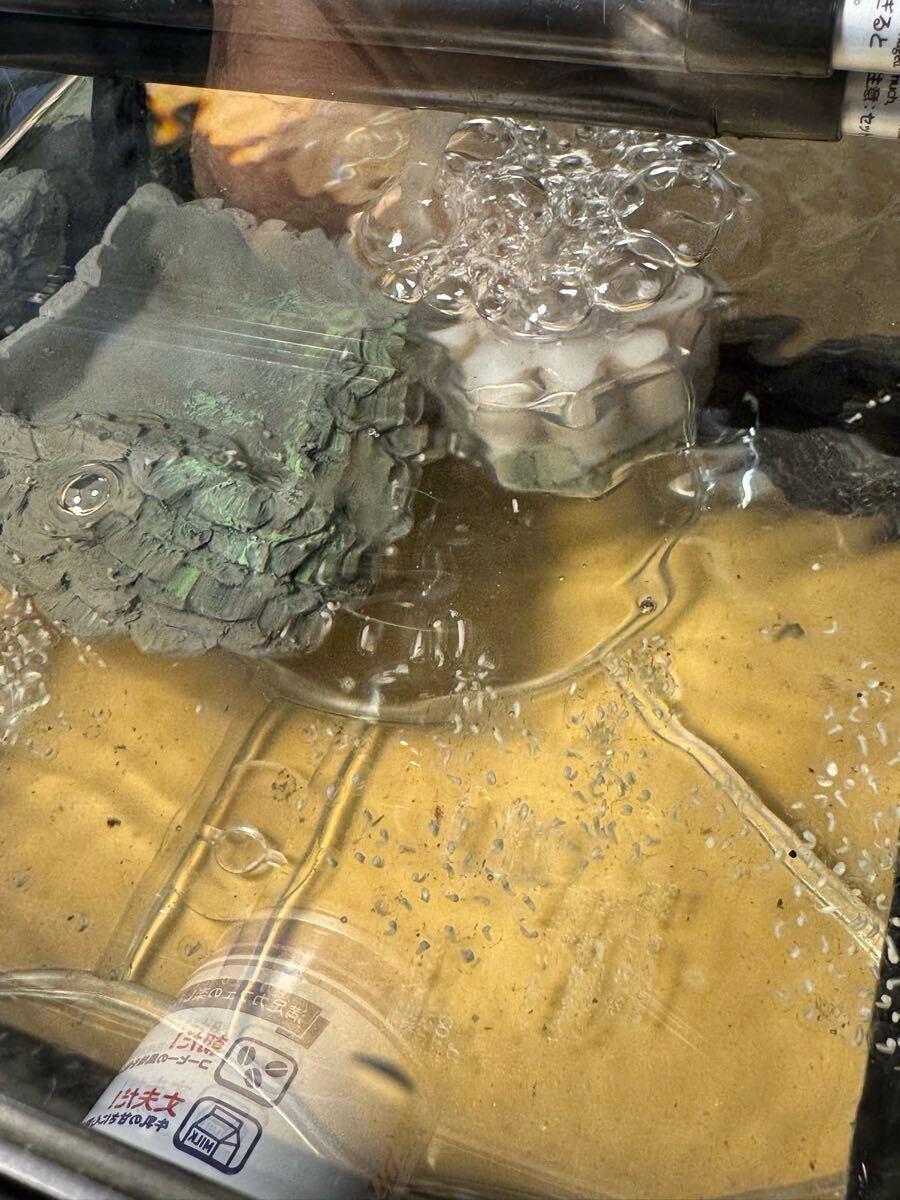 また幼体のうちは水滴程度でも溺死する事があります。水浸しもあまり良くはありませんが、死因に1番多いのが乾燥と溺死です。水分はこまめに霧吹き程度で1日数回乾かない程度にお願いします。こちら上陸後はしばらくの間、溺死のリスク回避のため、飼育環境に水受けは設置しておりません。