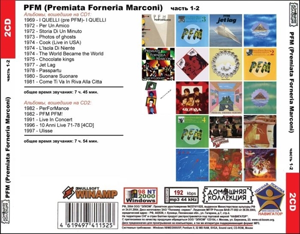 PFM (PREMIATA FORNERIA MARCONI) PART1 CD1&2全集 MP3CD 2P◎