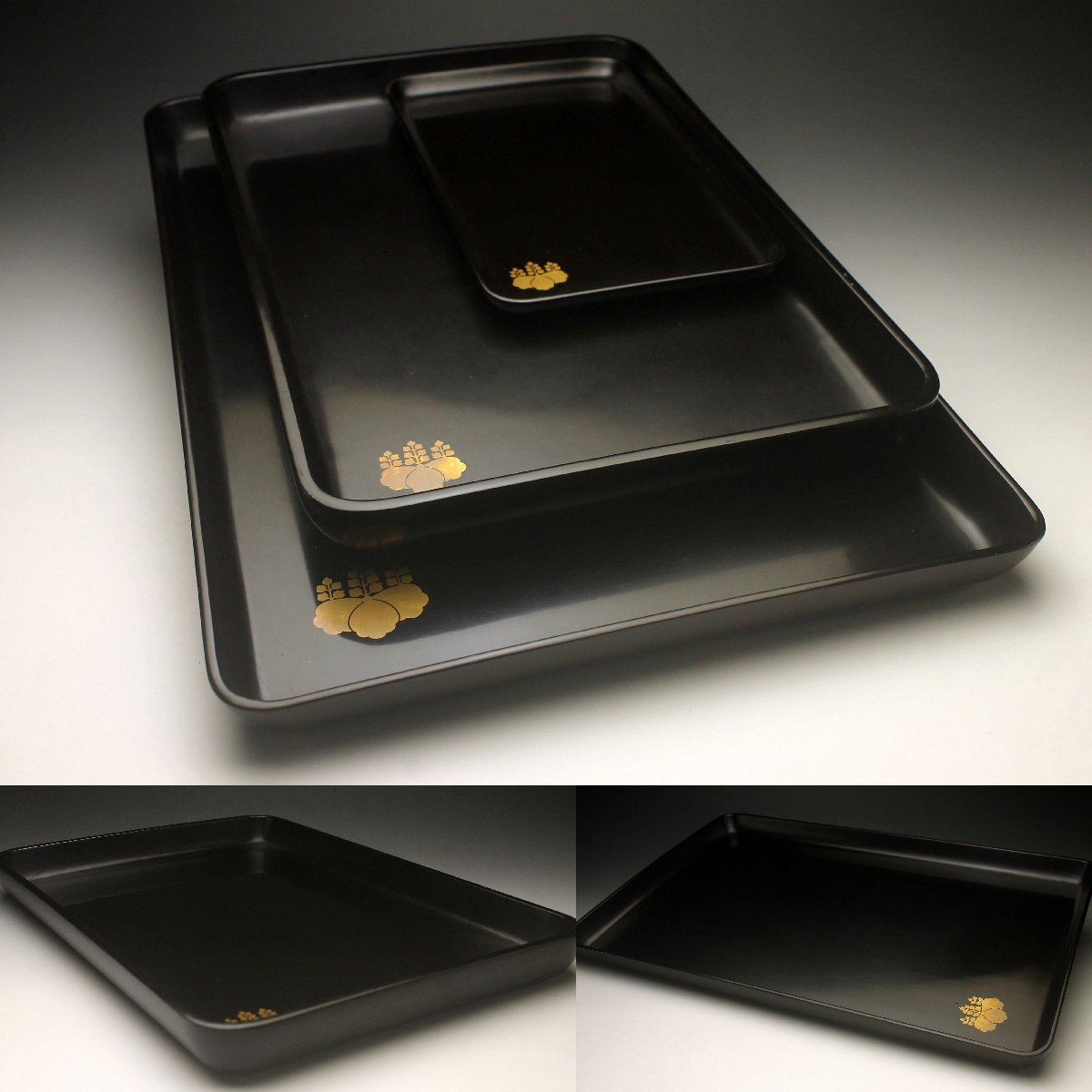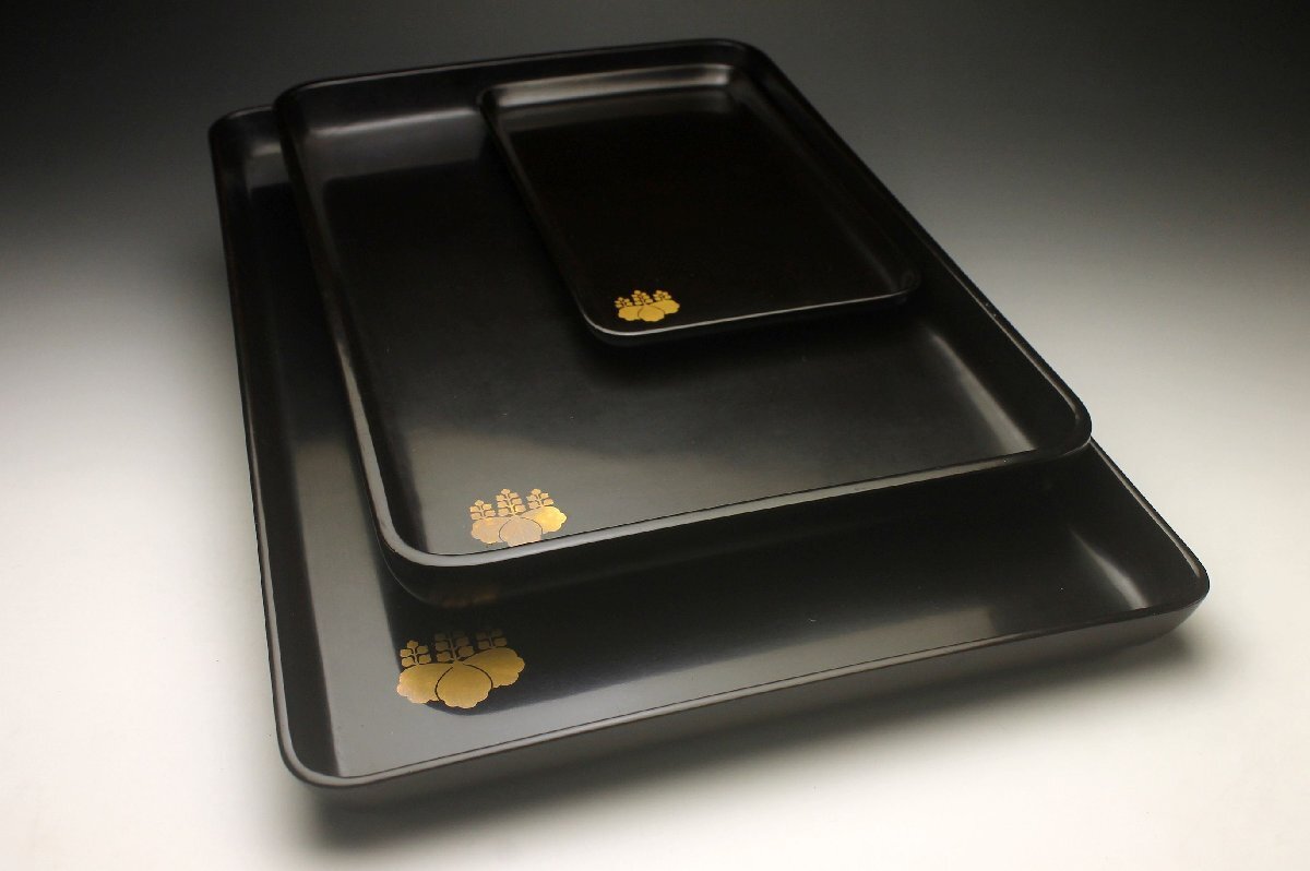 Product name: 【余韻】 輪島塗 漆塗 漆器 天然木製 五三桐 切手盆 祝儀盆 煎茶盆 大中小三枚★時代物<同梱可>