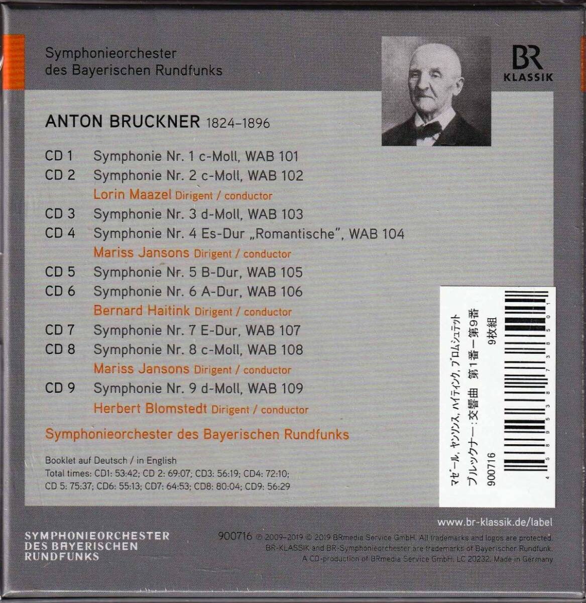 バイエルン放送交響楽団と4人の名指揮者による、ブルックナーの交響曲第1番~第9番。第3,4,9番は初出音源となっています。未開封、新品です。