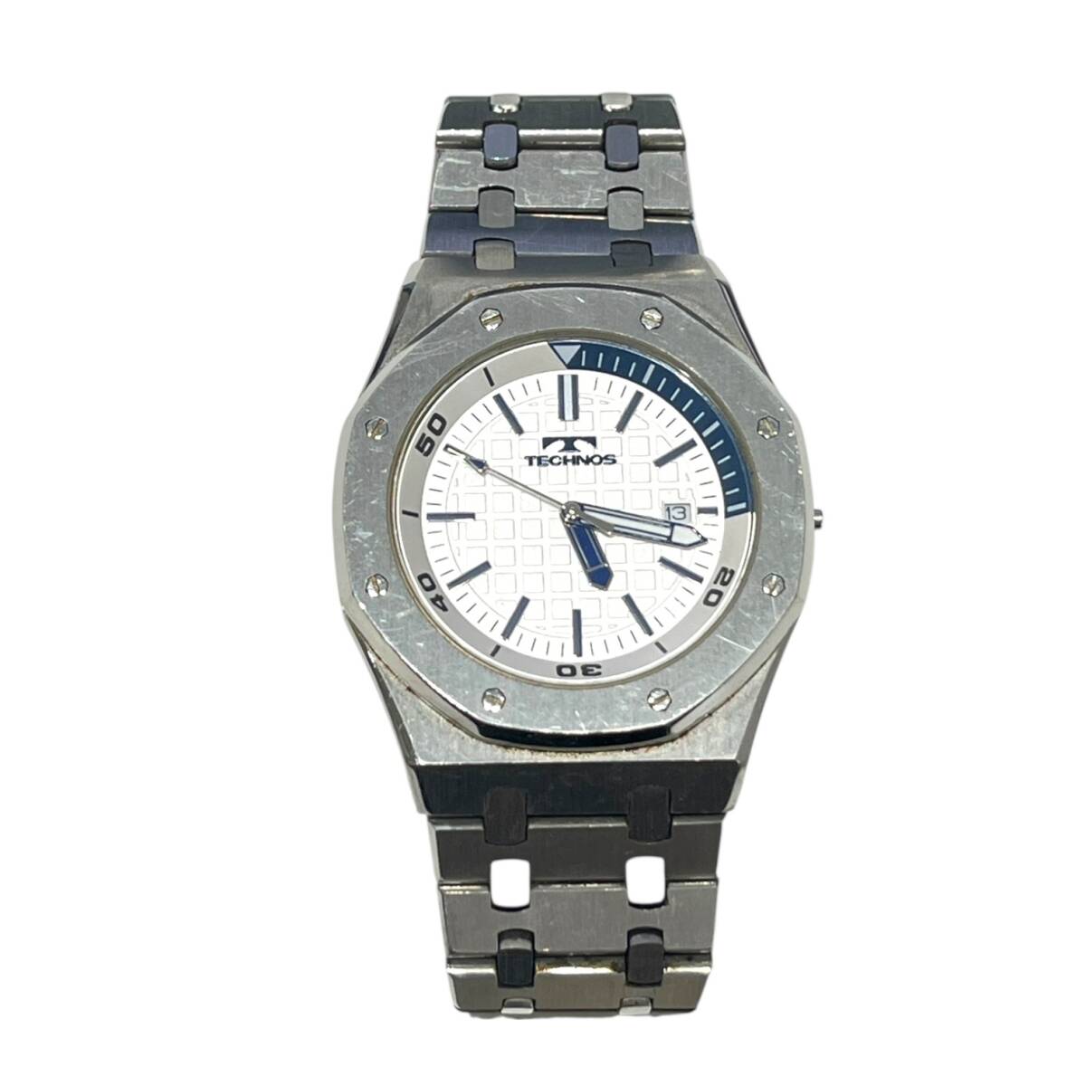 ■中古品■TECHINOS テクノス T6A08 腕時計 クォーツ メンズ 本体のみ シルバー色 3針 カレンダー ZE5257Z