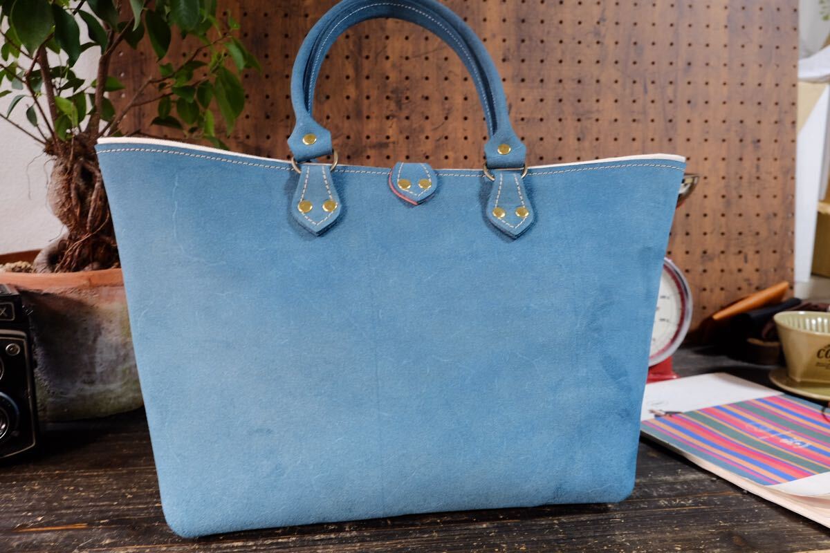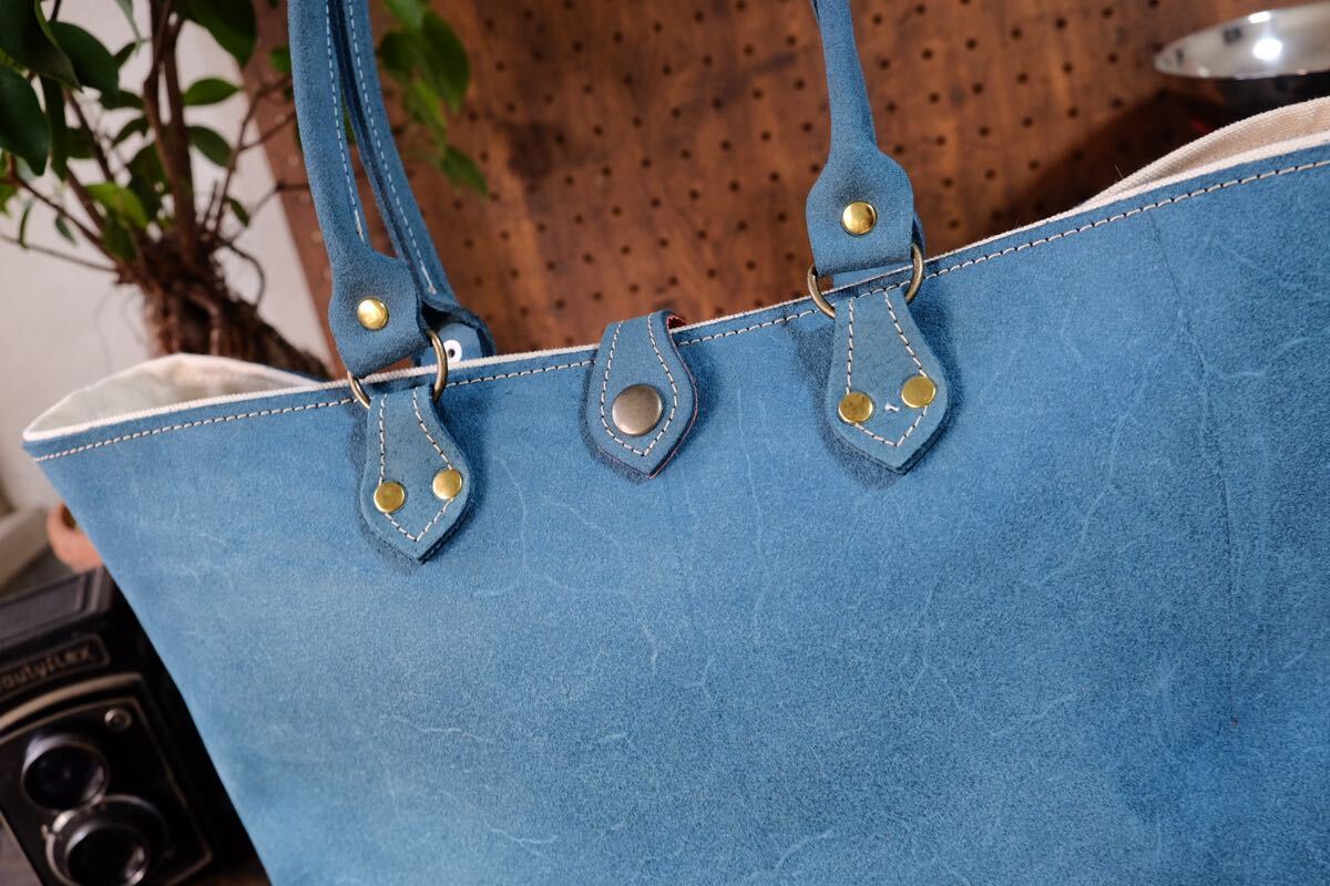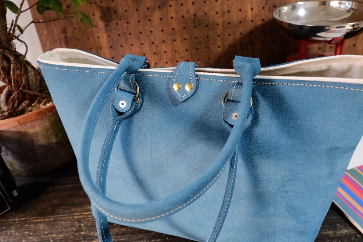 Product name: ◆◇イタリア産霜降りターコイズブッテロ牛革バックスキンレザートートバッグ Lサイズ大容量A4 作家手作り★床革日本製鞄帆布ブルー