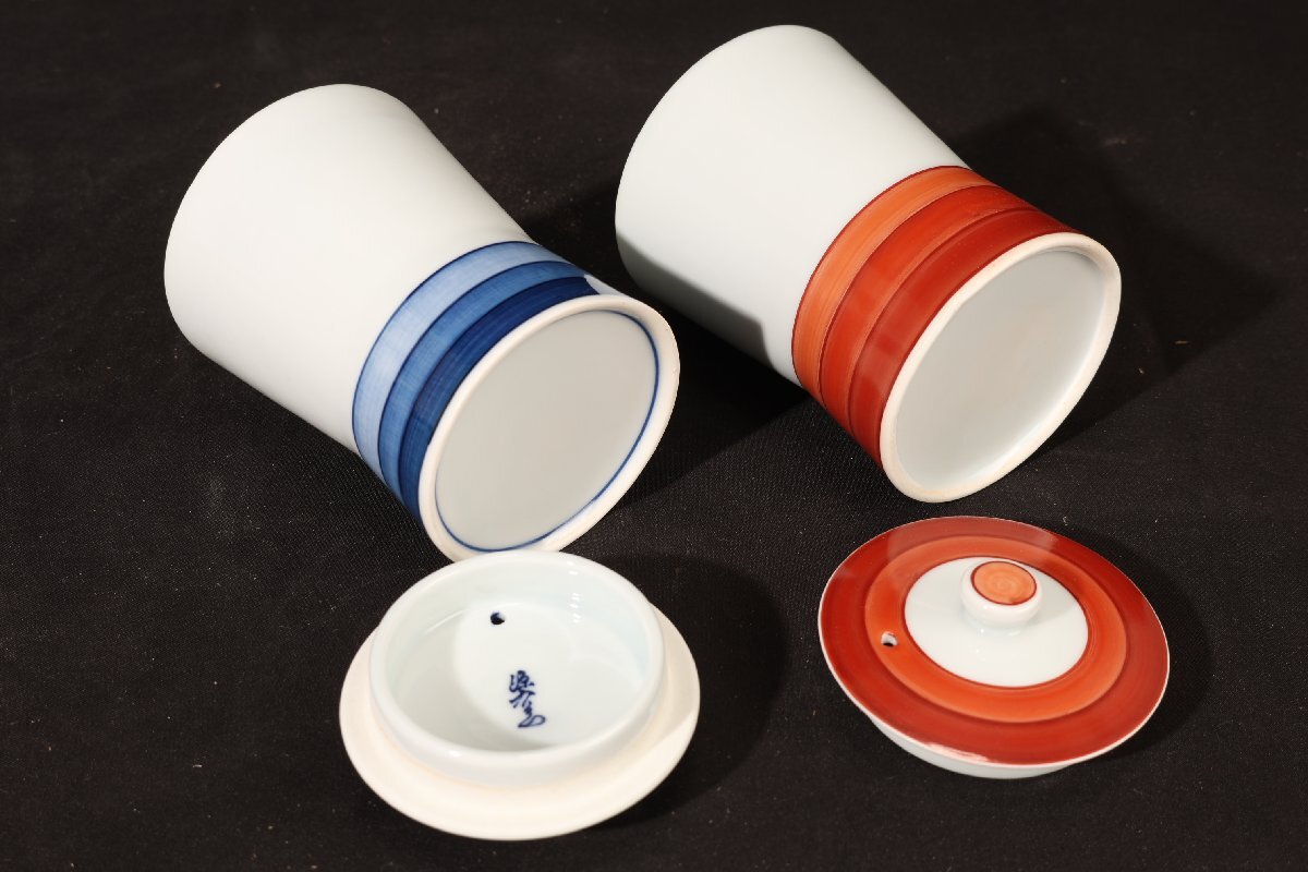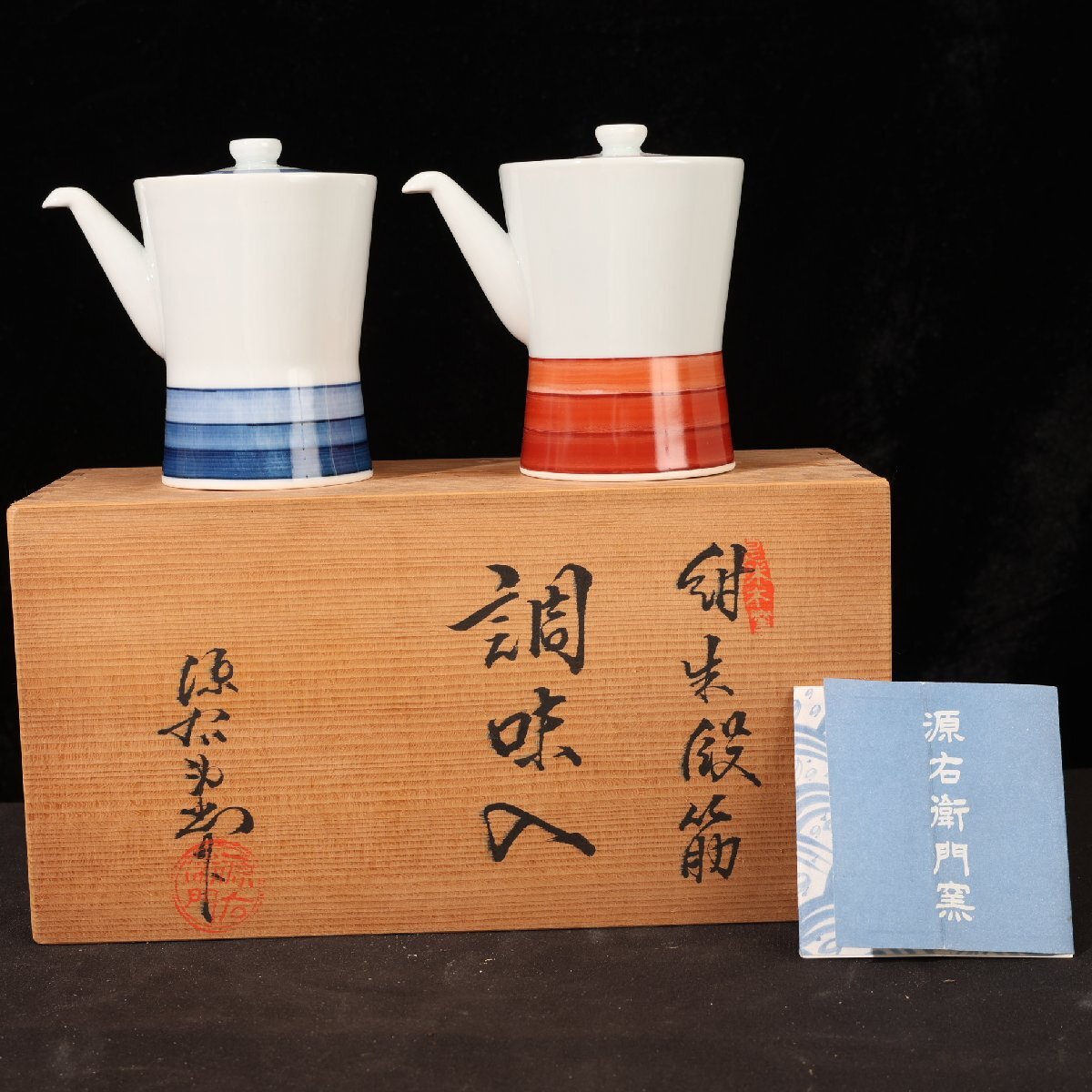 【珍品堂】1円から L35-V01 有田焼 源右衛門窯 紺朱 調味料入 共箱 木箱 美術陶芸 時代物 古美術 骨董品 アンティーク 昭和レトロ