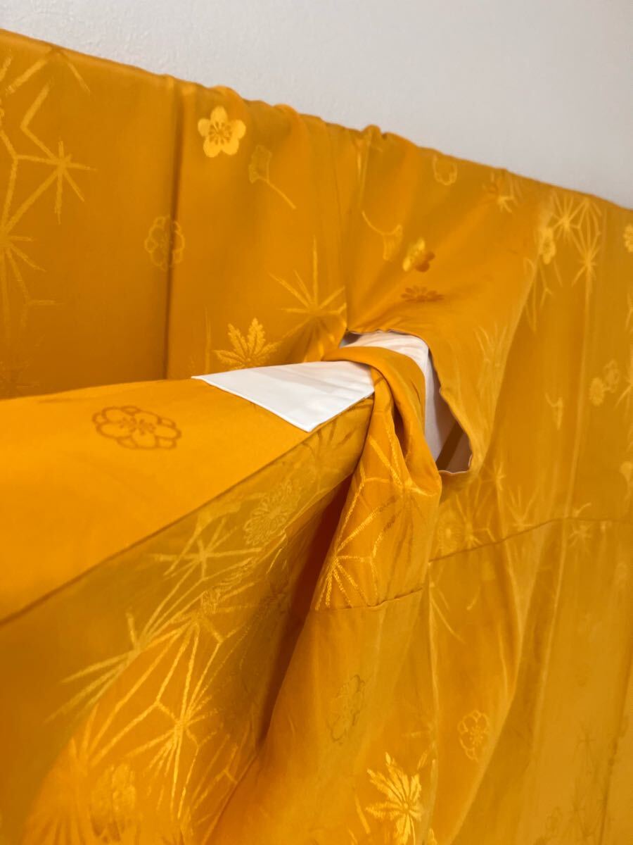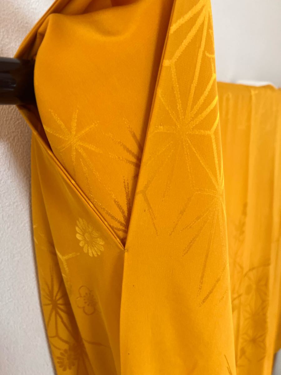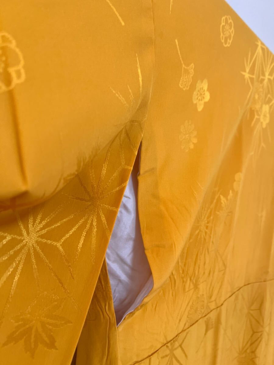 Product name: 振袖長襦袢 正絹 黄金色系 着物 襦袢 和装 下着 晴着 襦袢