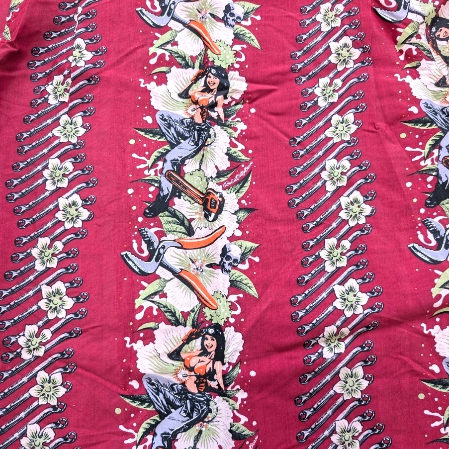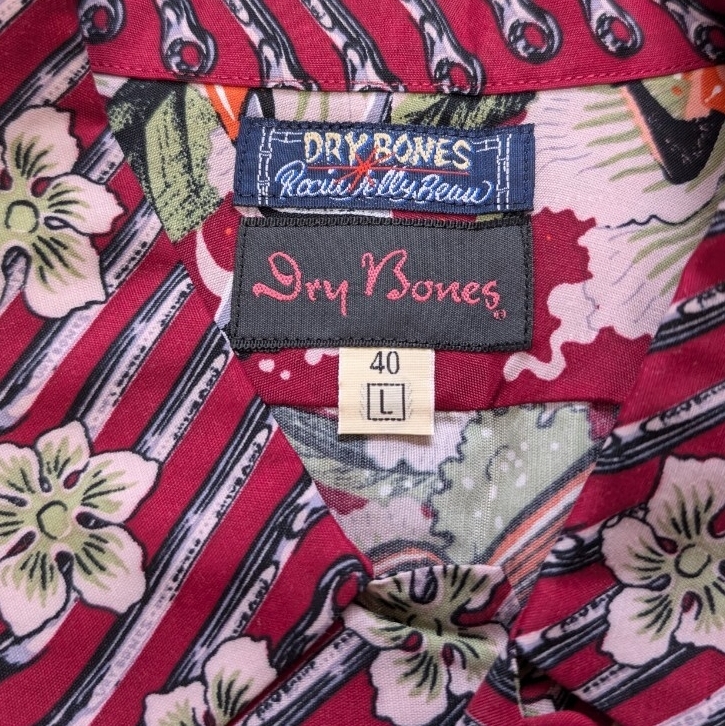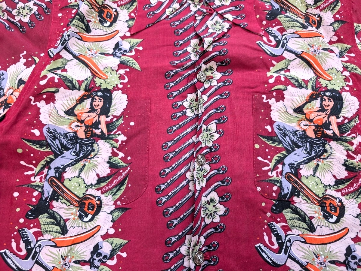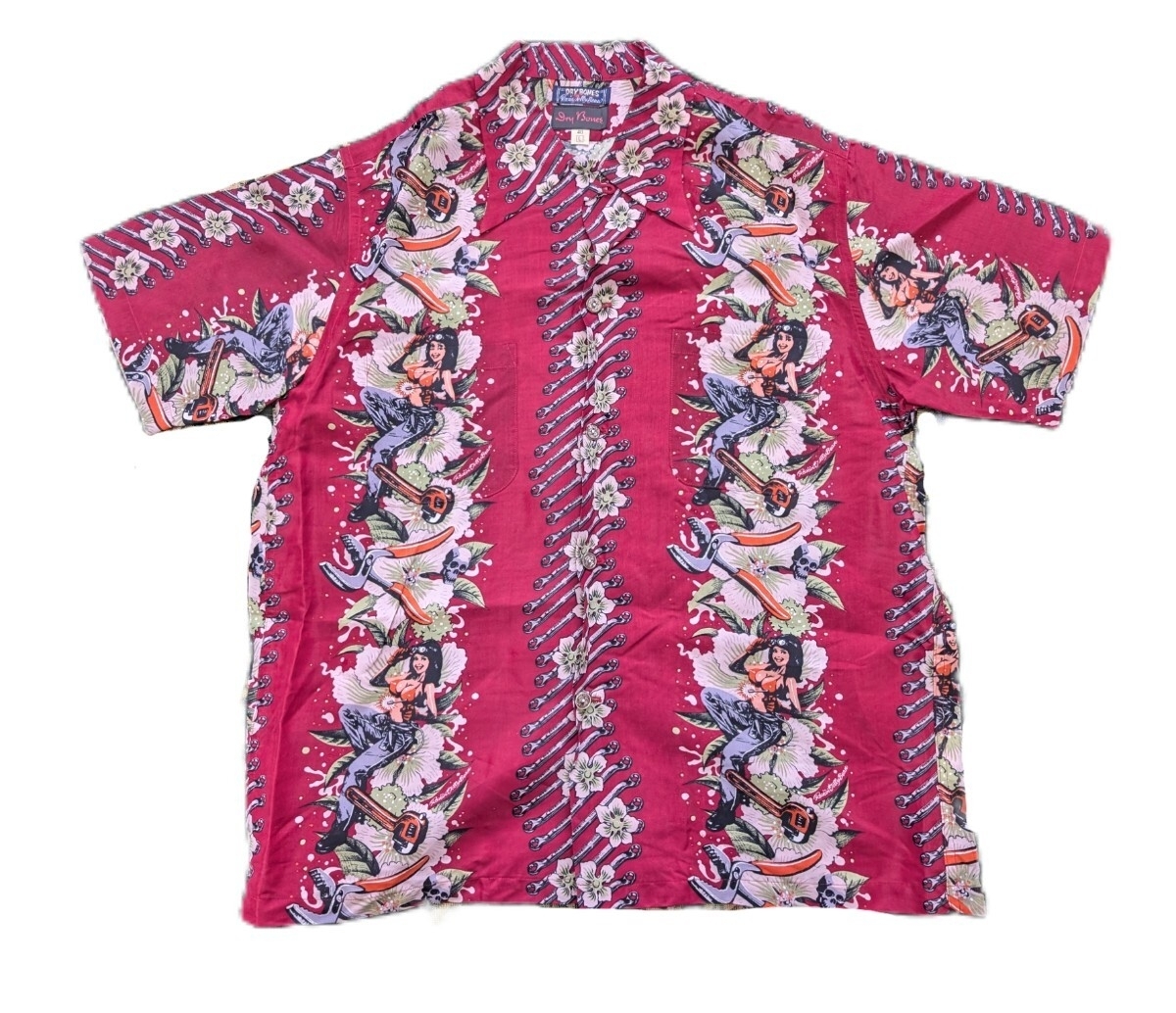 激レア ドライボーンズ ロッキンジェリービーン 古銭釦 ガール アロハ シャツ dry bones レーヨン sunsurf サンサーフ