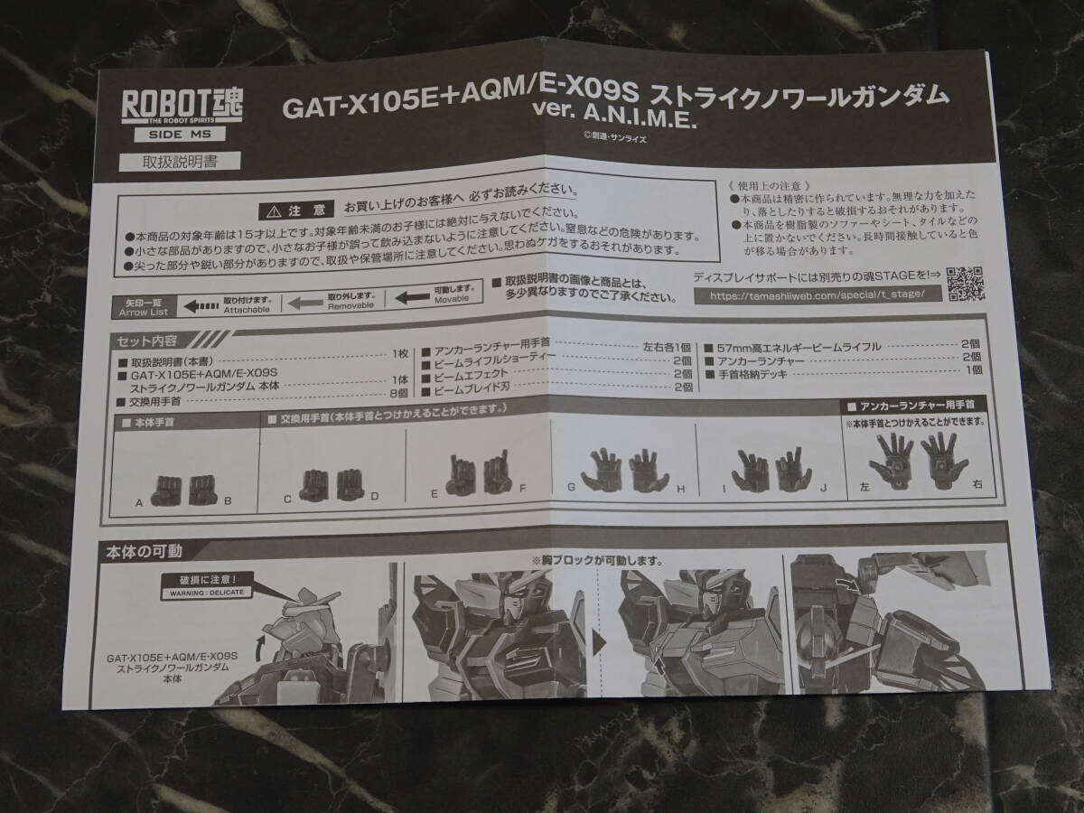 Product name: 【ROBOT魂】 SIDE MS GAT-X105E+AQM/E-X09S ストライクノワールガンダム ver. A.N.I.M.E. 開封 / バンダイ ロボット魂 ガンダムSEED C.E.73