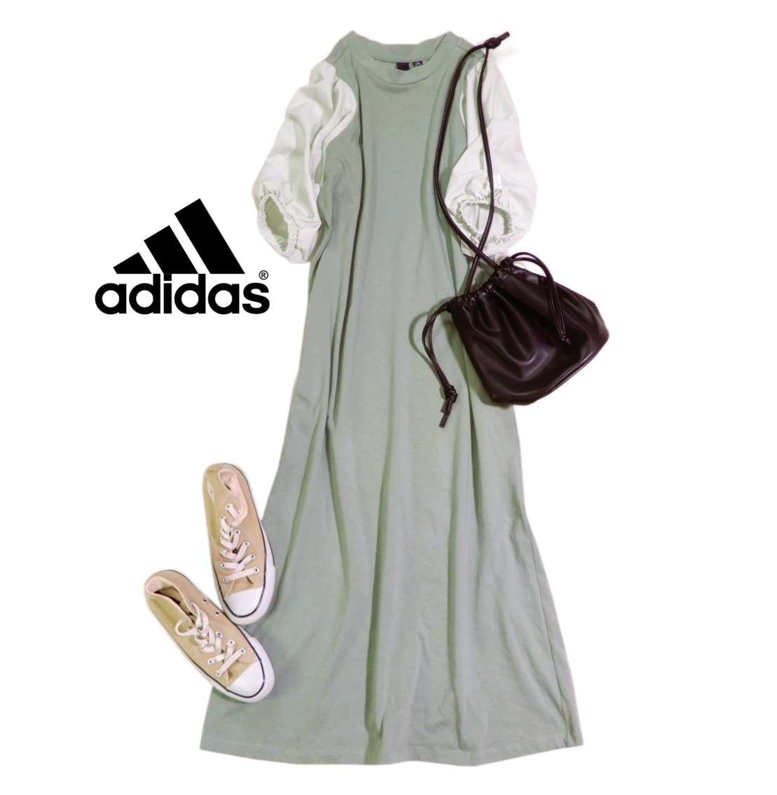 アディダス adidas pakaian adidas カジュアル可愛い☆スリーストライプス ボリュームスリーブ カット ワンピース M