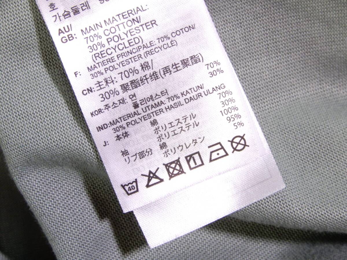 素材は 本体 綿70 ポリエステル30 袖 ポリエステル100 リブ部 綿95 ポリウレタン5%です。