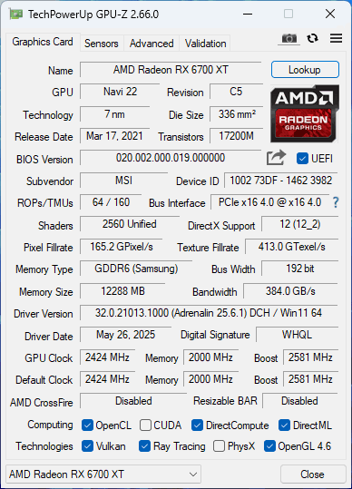 型番: Radeon RX 6700 XT MECH 2X 12G