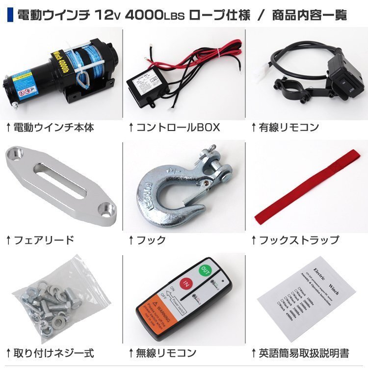 Product name: 【数量限定セール】電動ウインチ 12v 4000LBS 1814kg ロープ 無線リモコン 電動 ロープタイプ ホイスト 小型 有線コントローラー 未使用