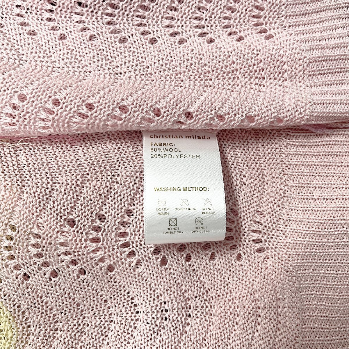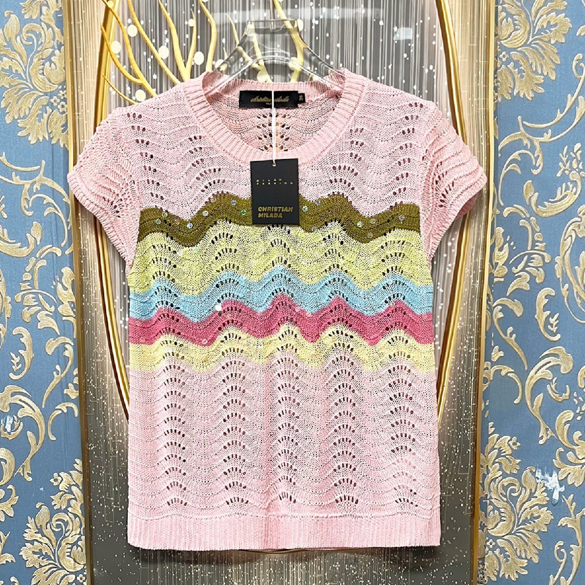 定価3万★christian milada・ミラノ発・半袖 Tシャツ★ウール混 薄手 通気 ニット 透かし編み キラキラ カラフル レディース 夏 S/34サイズ
