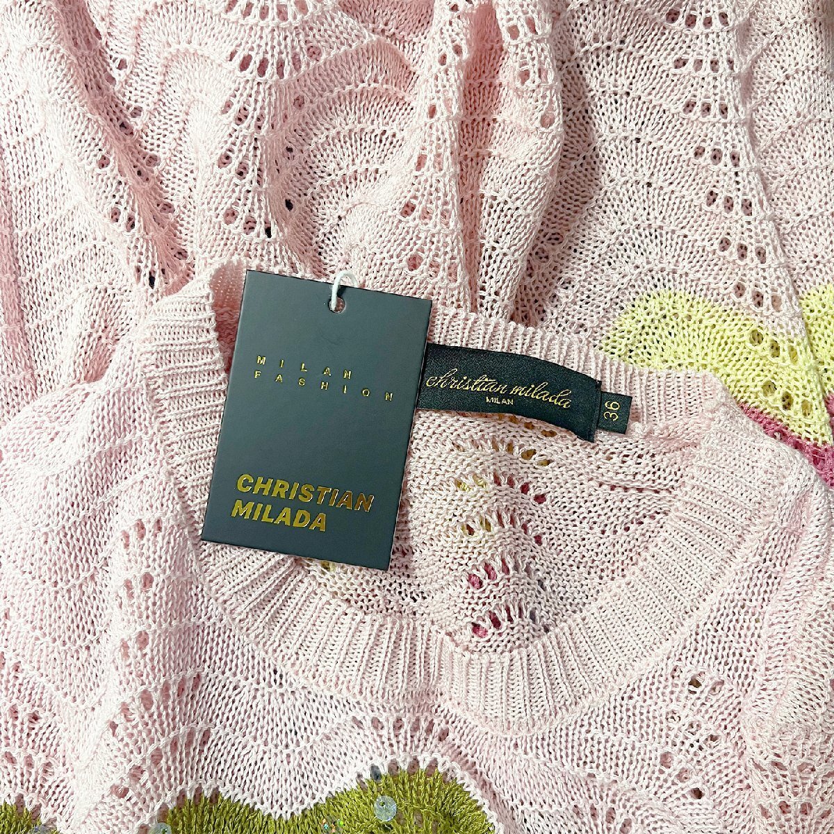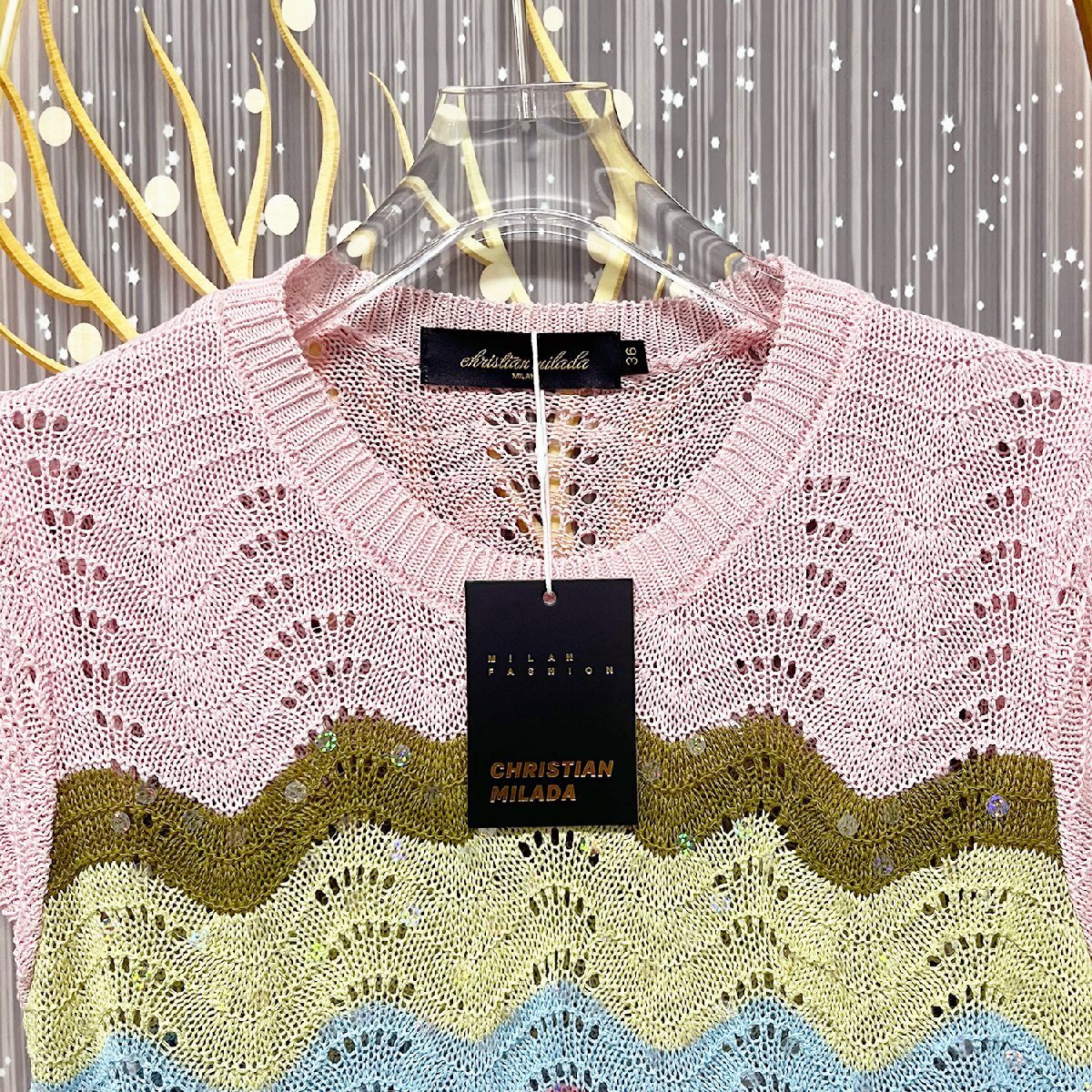 Product name: 定価3万★christian milada・ミラノ発・半袖 Tシャツ★ウール混 薄手 通気 ニット 透かし編み キラキラ カラフル レディース 夏 S/34サイズ