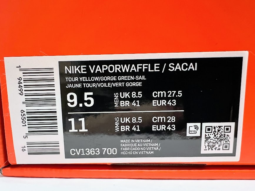 1円~ 新品未使用 NIKE sacai Vapor Waffle Tour Yellow/Stadium Green-Sail ナイキ サカイ ヴェイパー ワッフル CV1363-700 27.5cm