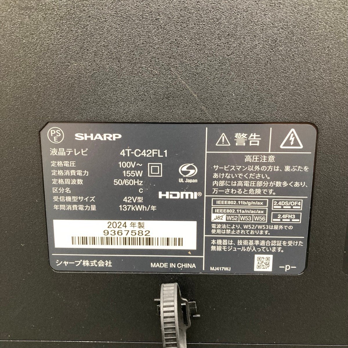 Product name: ジャンク SHARP AQUOS 4T-C42FL1 4K 液晶テレビ Google TV[D6586]