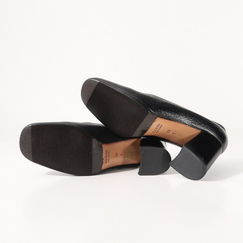 Product name: GS0106■イタリア製 GUCCI グッチ レザー スクエアトゥパンプス ロゴプレート チャンキーヒール 靴 サイズ36C 23cm相当 ブラック系