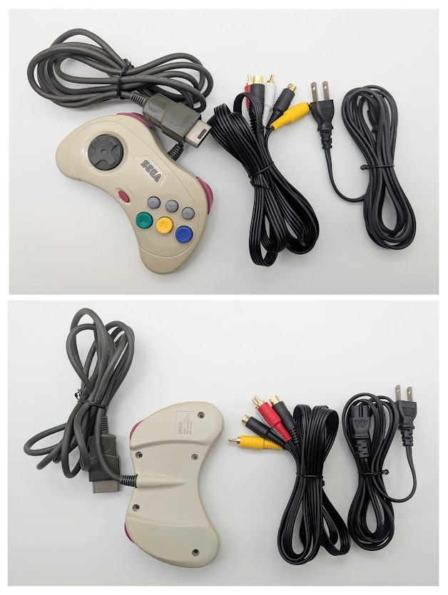 付属品:セガサターン後期型本体/めがねコード/S端子付き3色AVケーブル/純正コントローラー×1/パワーメモリー×2