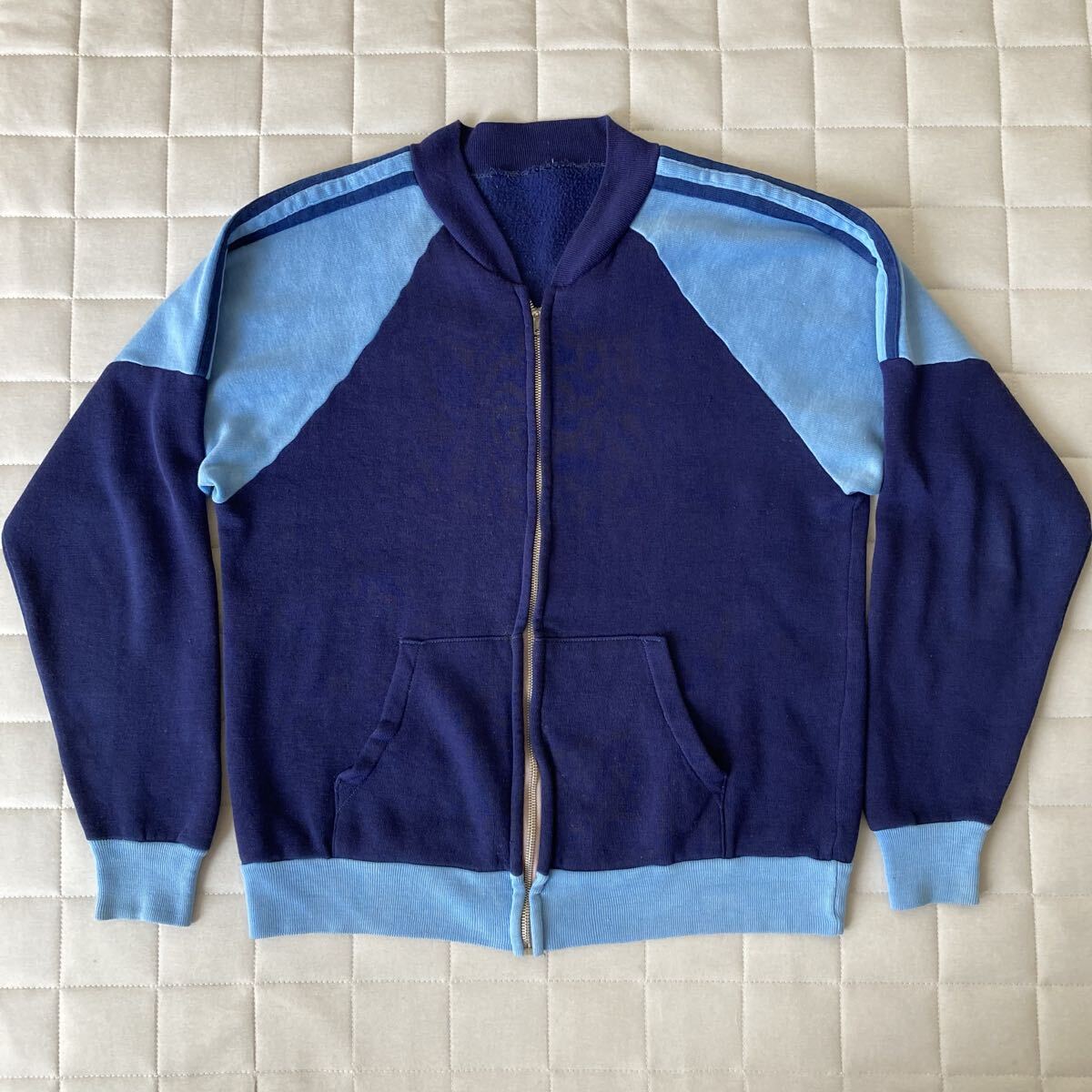 Product name: (ツートン)70s フルジップ スウェットシャツ サイズL程度 ネイビーxサックスブルー USA製 ビンテージ 60s ツートン