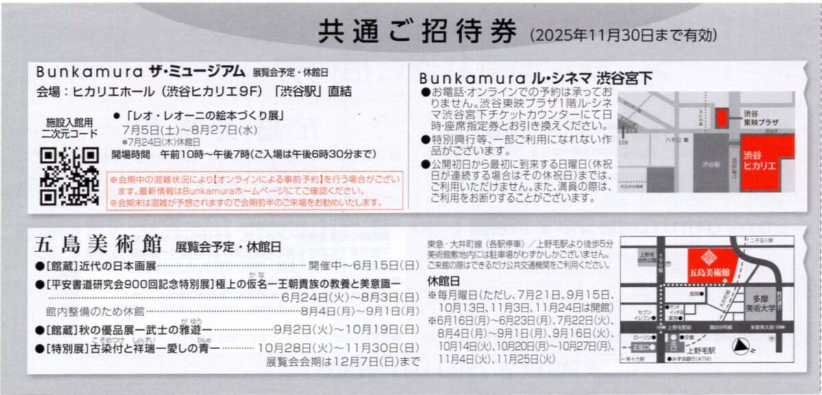 • 本券対象の展覧会名、開催期間等はBunkamura ザ・ミュージアム/Bunkamura ル・シネマ 渋谷宮下・五島美術館 共通ご招待券の裏面ご参照ください。
