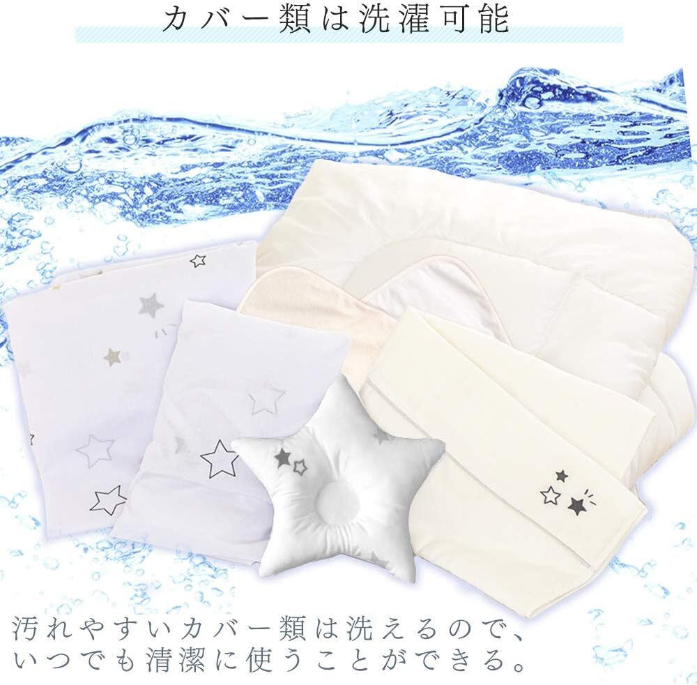 【開封済・未使用品】アイリスプラザ ベビー布団 8点セット 70x120cm スター ホワイト