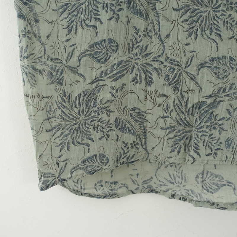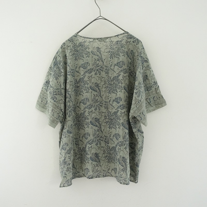 【2024/定価2.9万】パドカレ pas de calais *コットンプリントブラウス*36綿グリーン総柄シャツ製品染め(25-2507-636)【81H52】