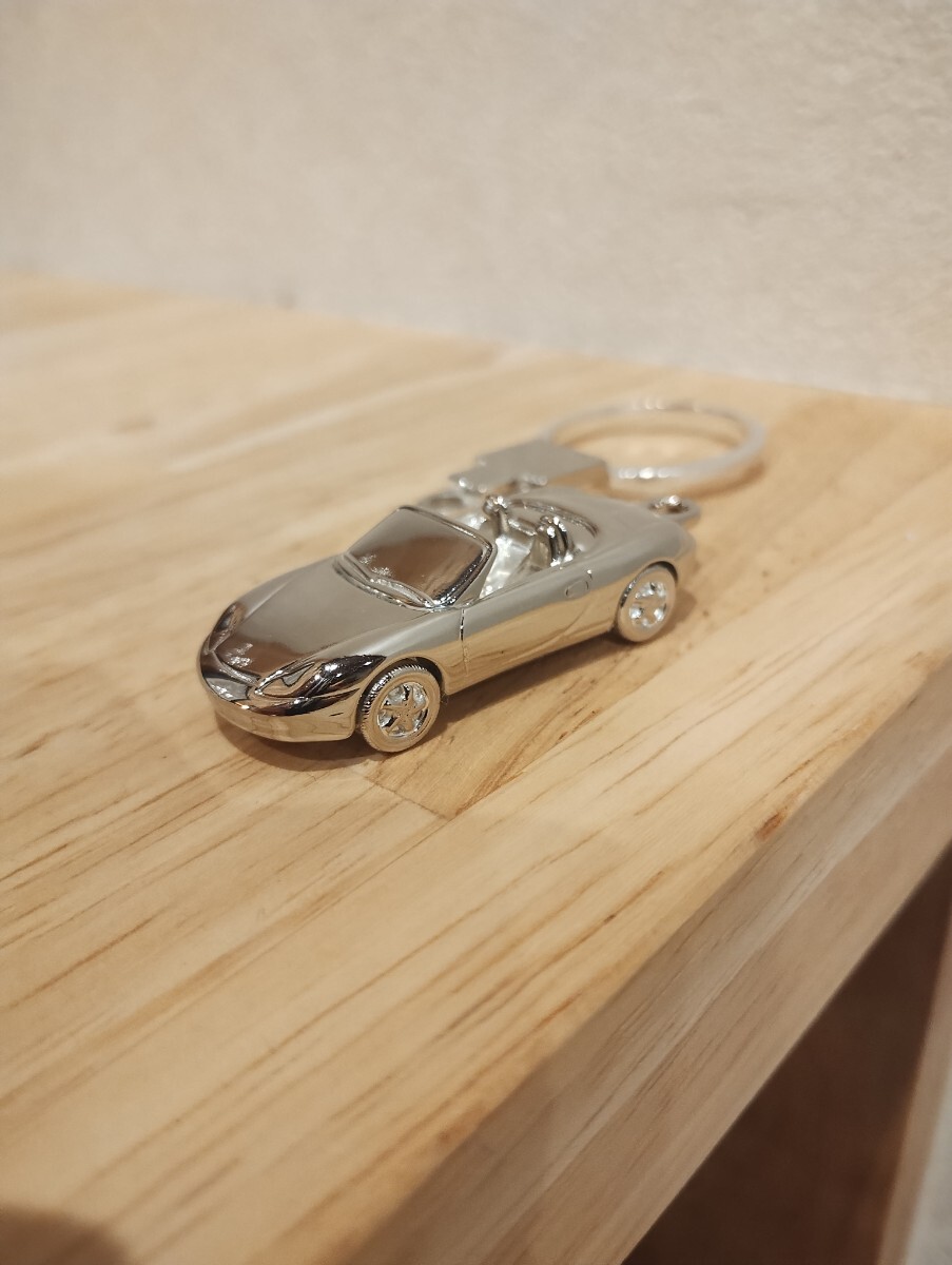 ポルシェ 初代ボクスターのシルバーキーホルダーです。