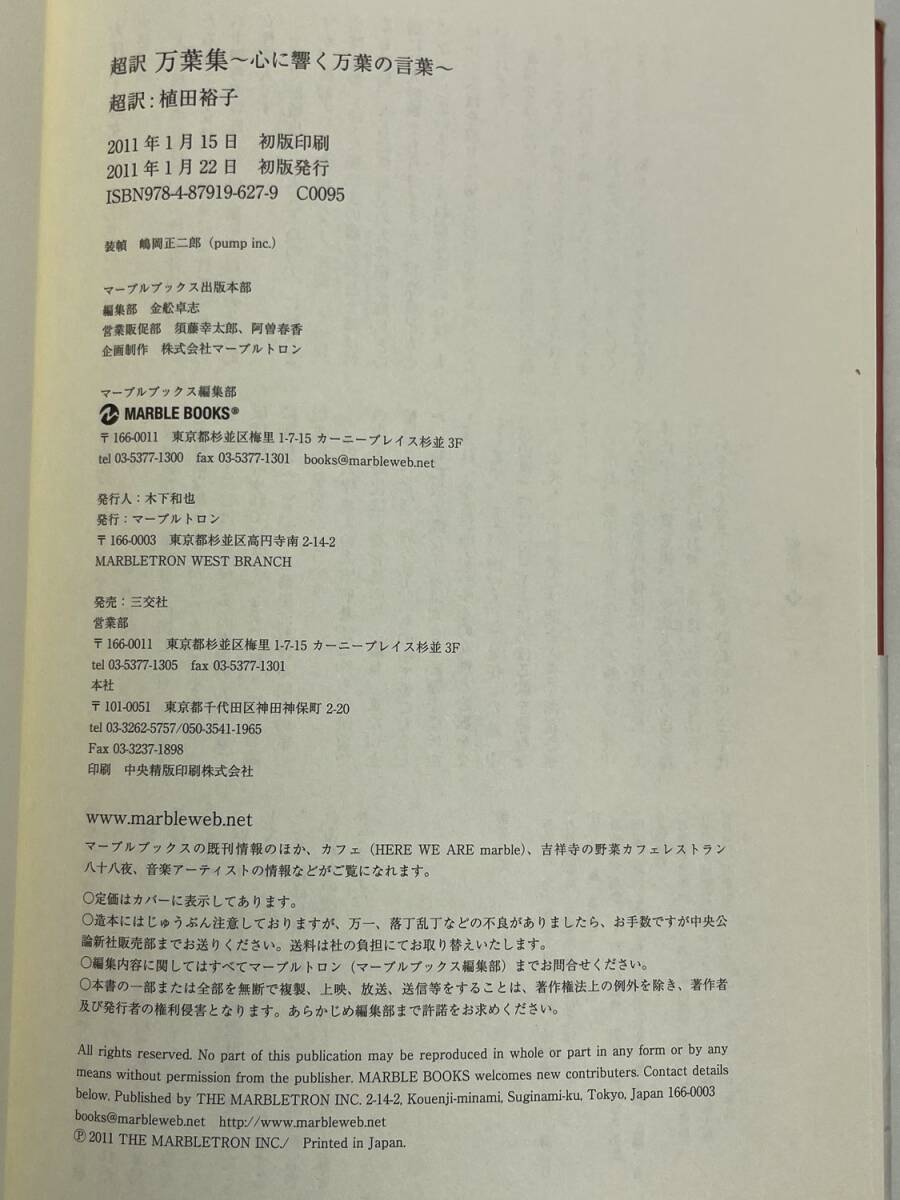Product name: 超訳 万葉集 ~心に響く“万葉”の言葉~ 平成23年 2011年発行初版【K168786】