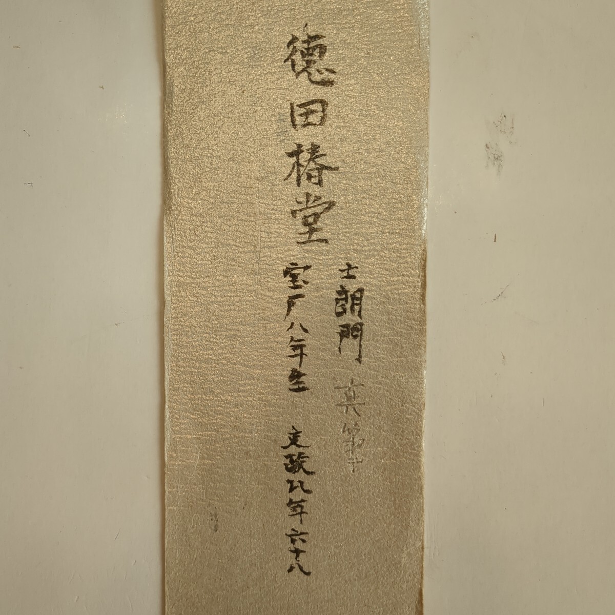 短冊:徳田椿堂,書2行俳句:俳人伊勢古市の人代々両替商錢屋長兵衛,井上士朗門士朗の発句集”枇杷園“編集江戸期:真作1枚