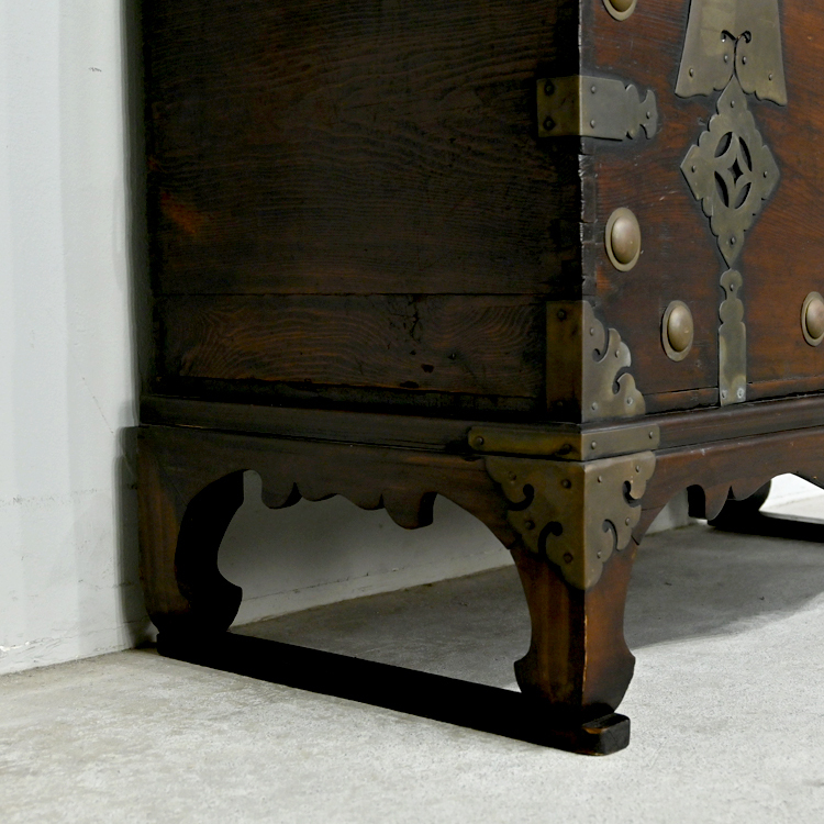 補強や装飾として取り付けられている凝った作りの金物も、古いものらしい経年変化が良い風合いです。