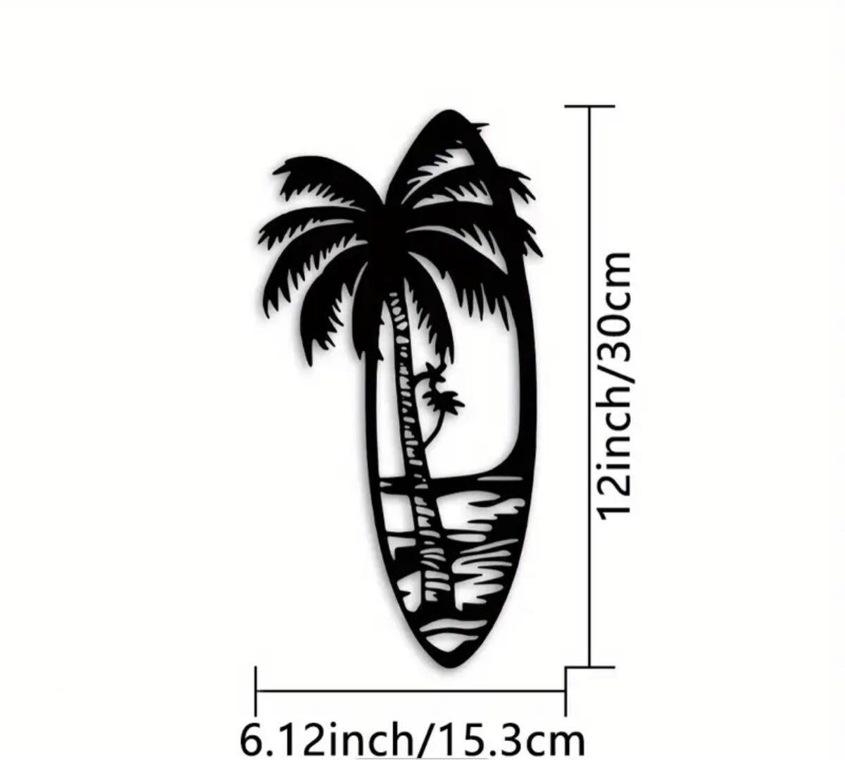 サーフボード型ヤシの木デザインのメタルアートサインになります。
