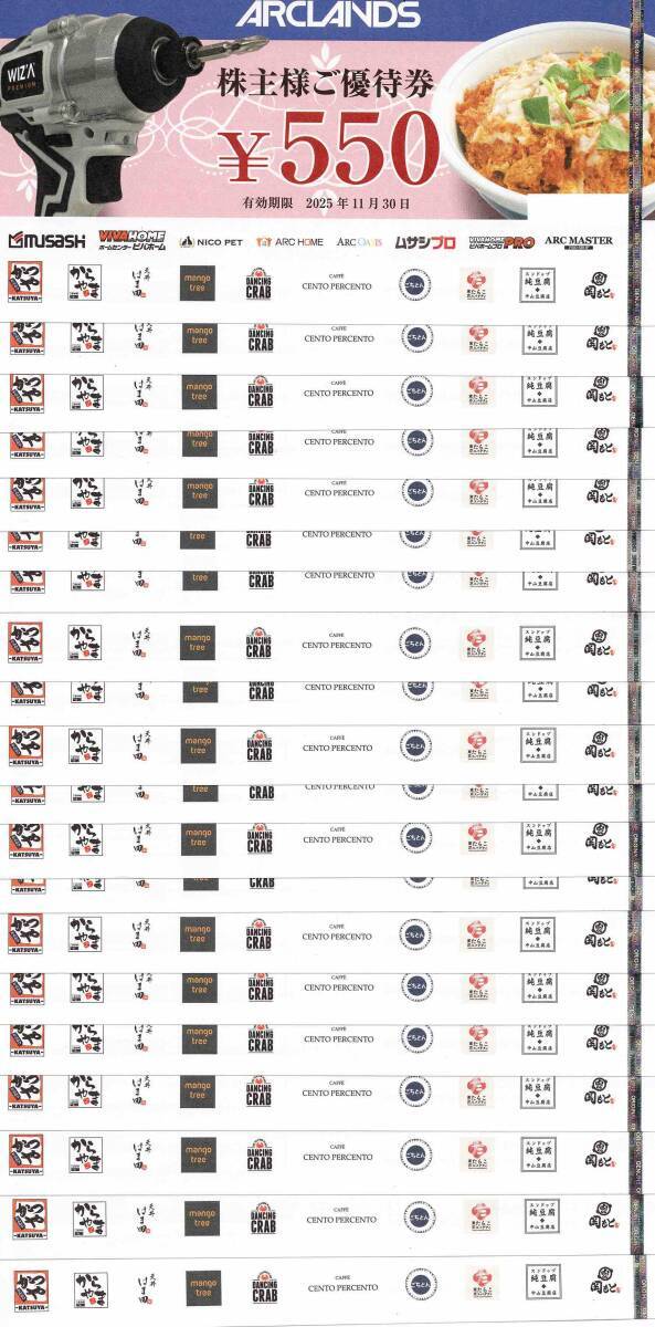 【KR441】アークランズ株主様ご優待券20枚 かつや優待券11,000円分 2025年11月30日