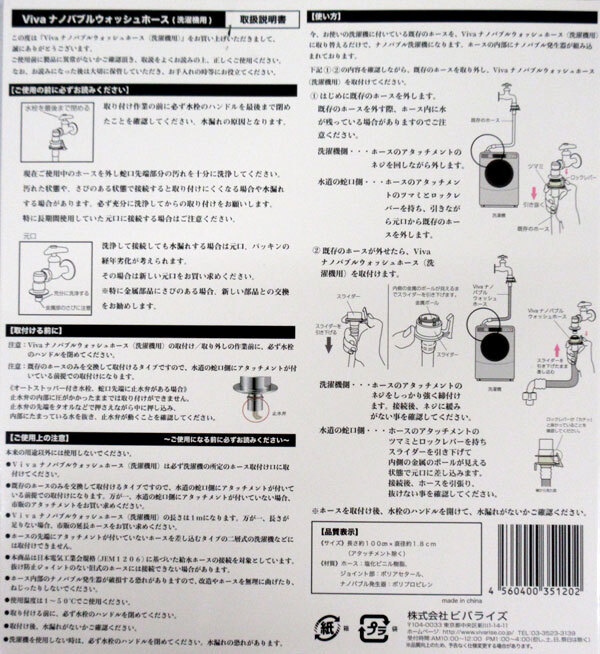 Product name: 送料300円(税込)■yv089■ビバライズ ビバ ナノバブルウォッシュホース(洗濯機用) 8140円相当【シンオク】