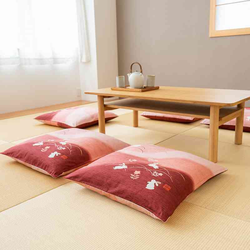 座布団カバー 5枚組 日本製 55×59cm 銘仙判 跳ねうさぎ模様 エンジ 日本の伝統美 オシャレ