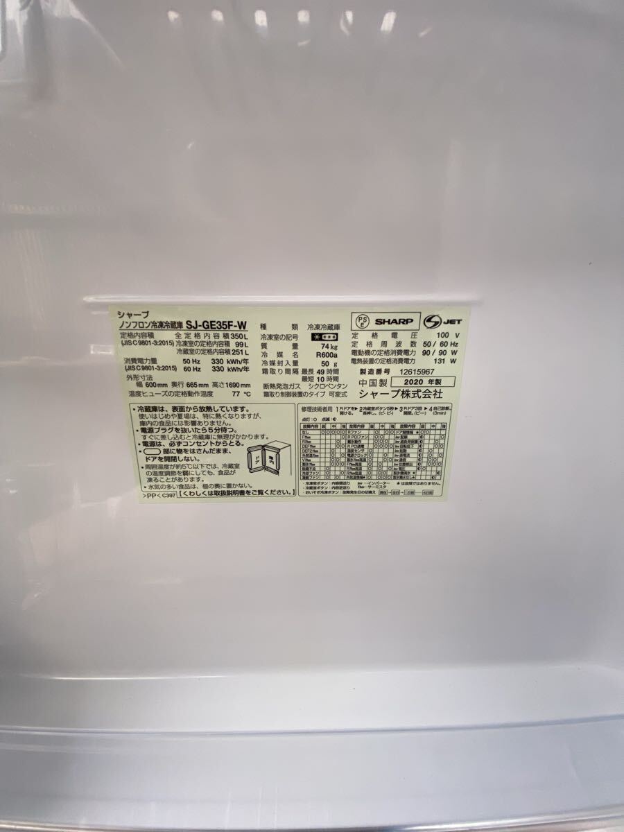 Product name: シャープ ノンフロン冷凍冷蔵庫SJ-GE35F-W 全定格内容積350L 74kg 両開き  3ドア 家電 冷蔵庫
